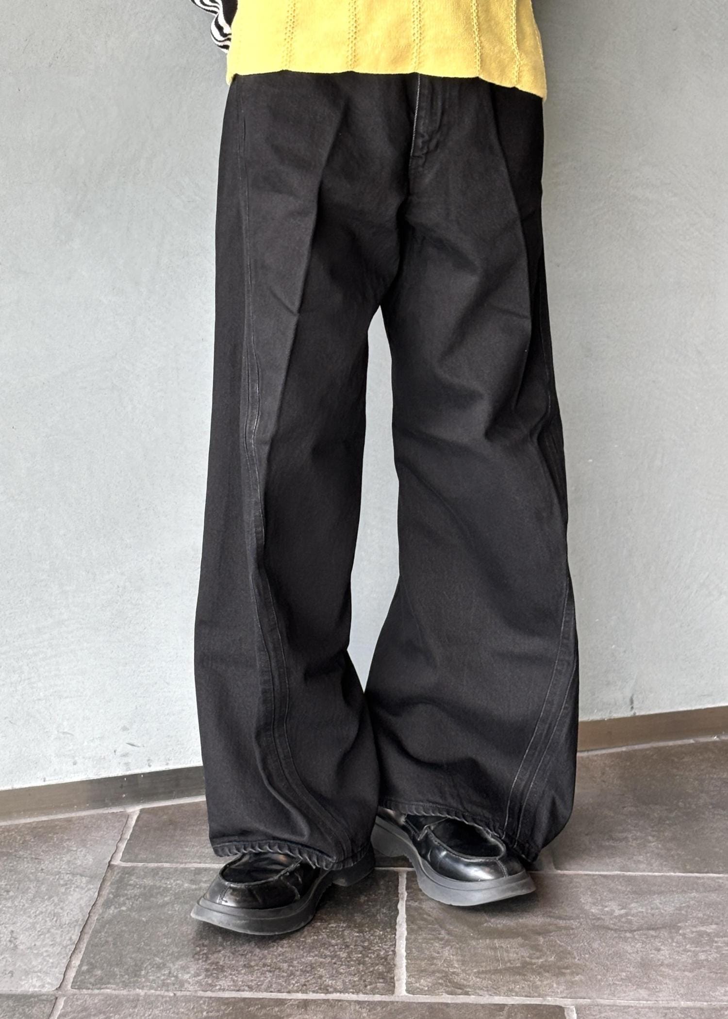 NEW!ADAM ET ROPÉ HOMME【NVRFRGT/ネヴァーフォーゲット】3D TWISTED WIDE LEG JEANS FADED BLACKブラック / 3¥35,200レビュー181cmでサイズ3着用。180cm以上の方にはサイズ3が〇。