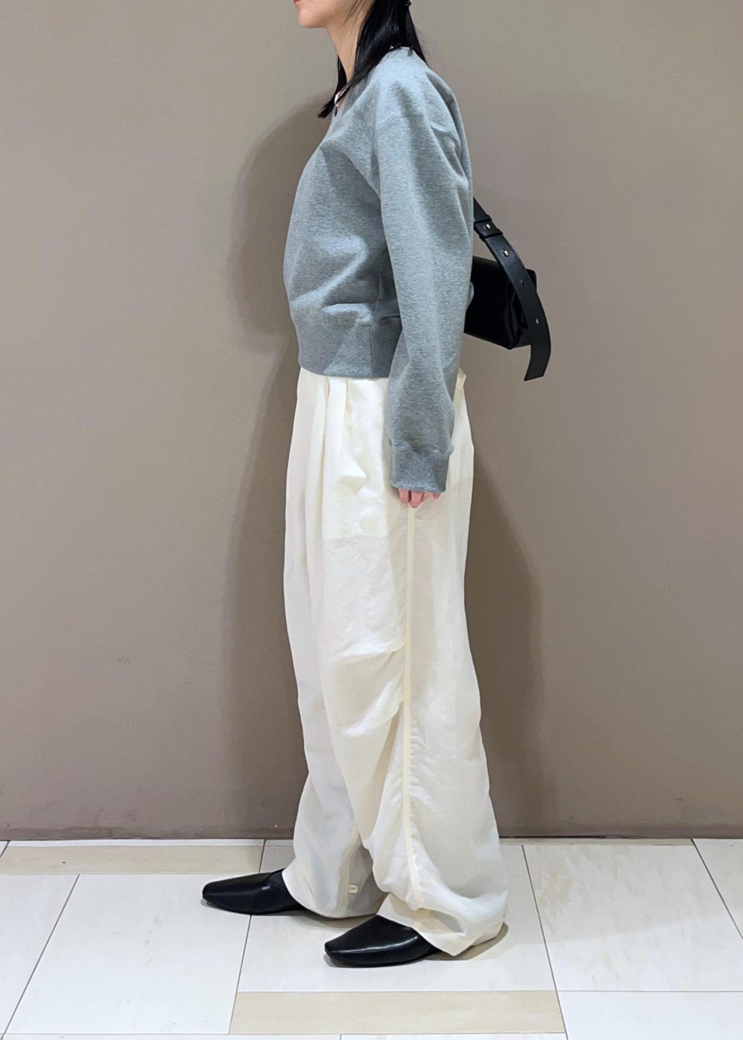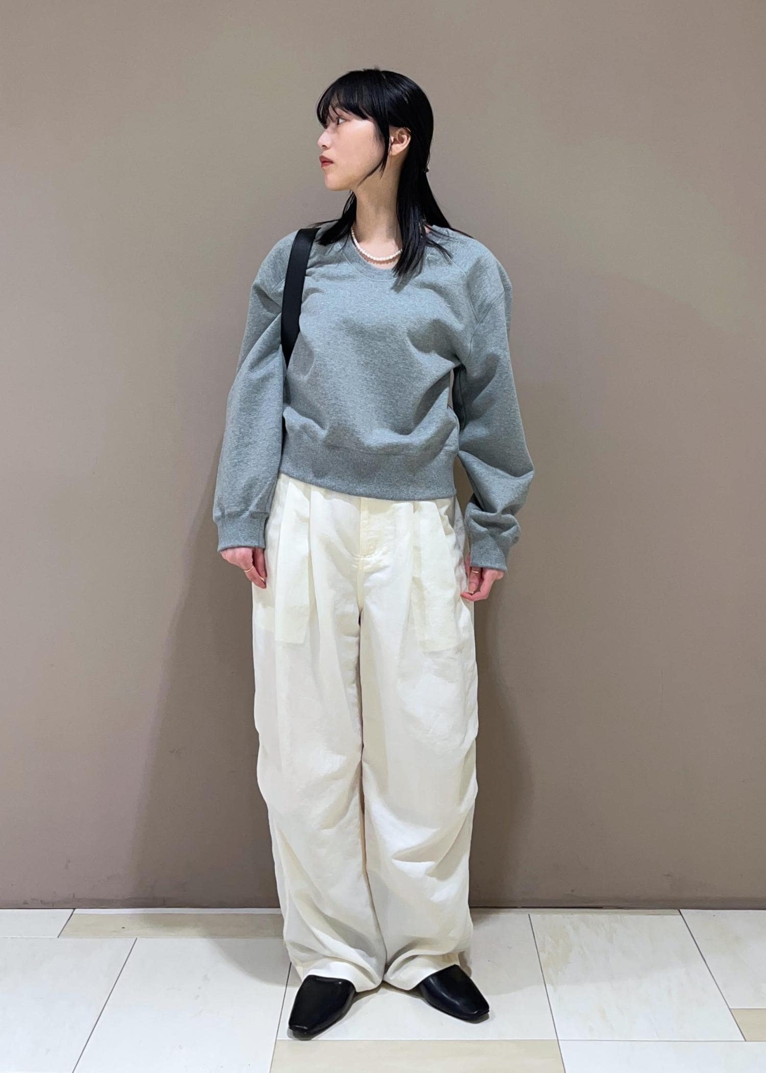 EMOELLE【EMOELLE】スウェットプルオーバーグレー / F¥19,800レビュー肩周りのボリューム感、首元の空きのバランスがとても綺麗です。