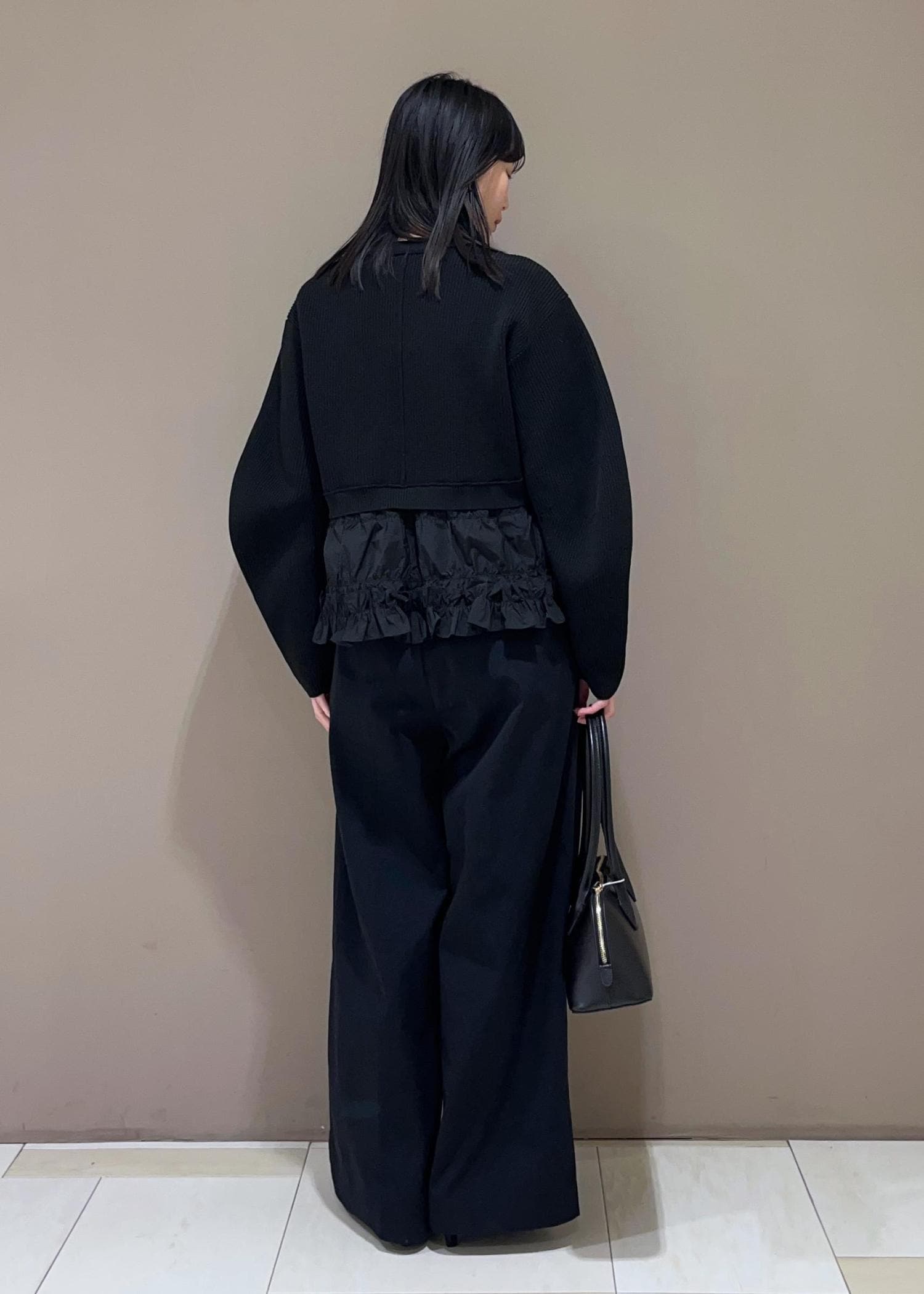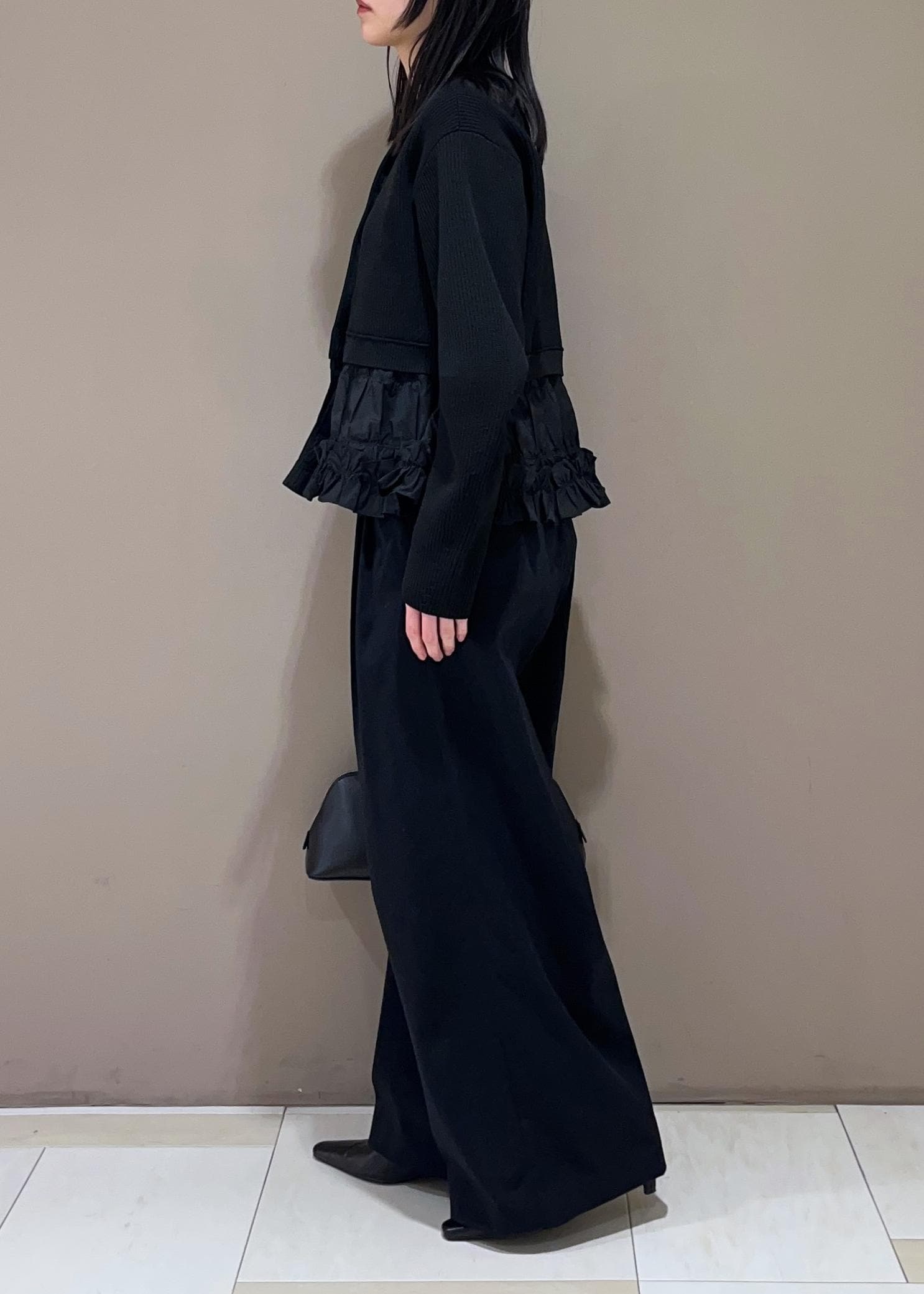 ADAM ET ROPÉ FEMME【サステナブル】ギャザーフリルコンビカーディガンブラック / F¥18,700レビューボリューム感しっかりのカーディガン。一枚で着映えしてくれます。