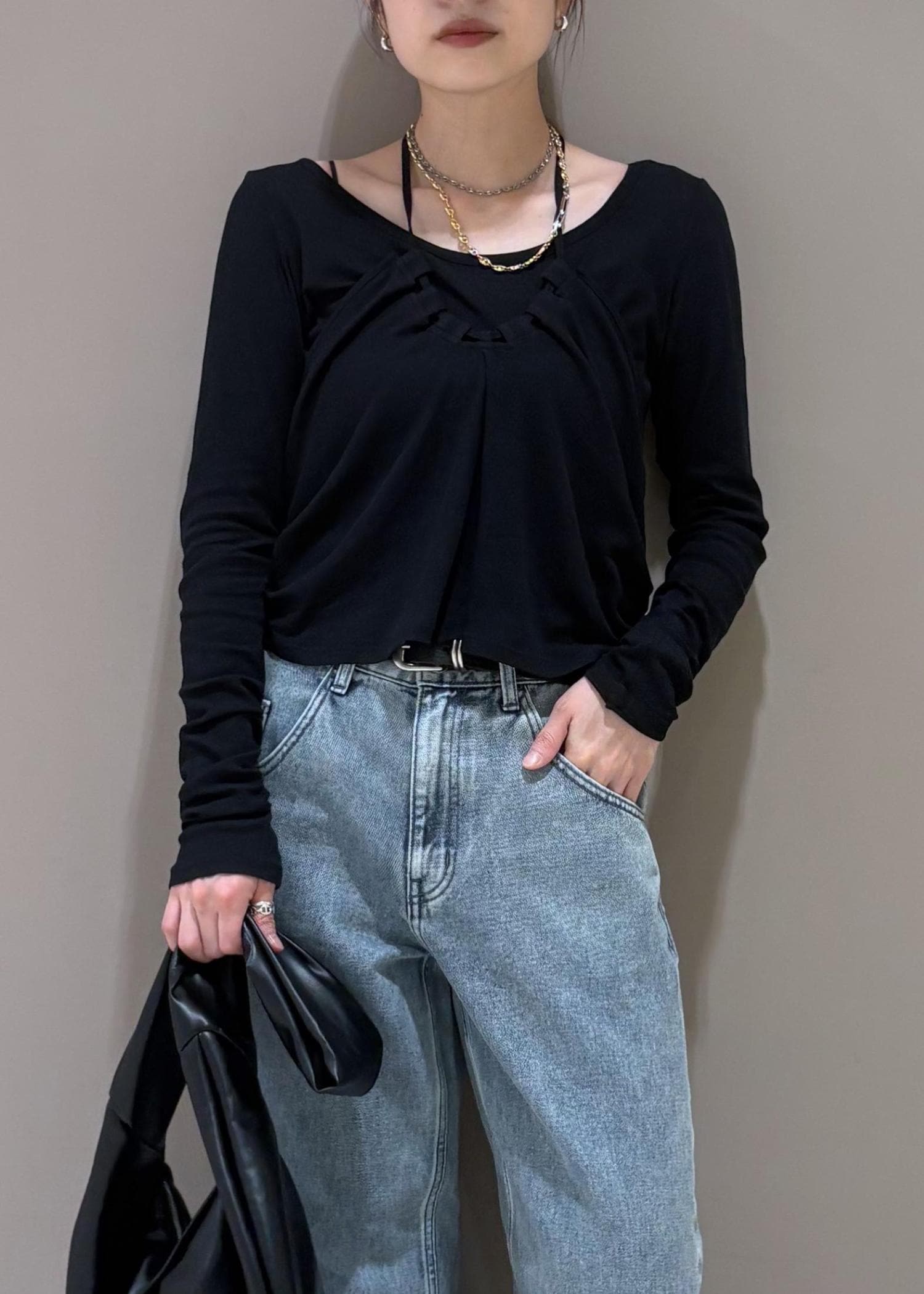 ADAM ET ROPÉ FEMMEホルターネックカットソーブラック / F¥15,400レビュー162cm.フリーサイズ着用。