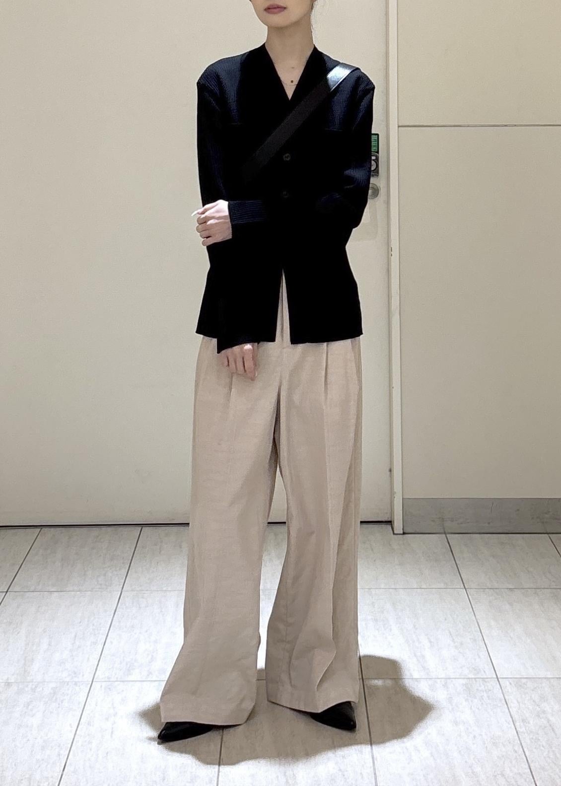 EMOELLE【EMOELLE】バイカラードレスパンツオフホワイト / 36¥22,000レビュー165cmで36サイズ着用しております!フラットシューズで合わせると、ゆったりとたまる丈感です◎