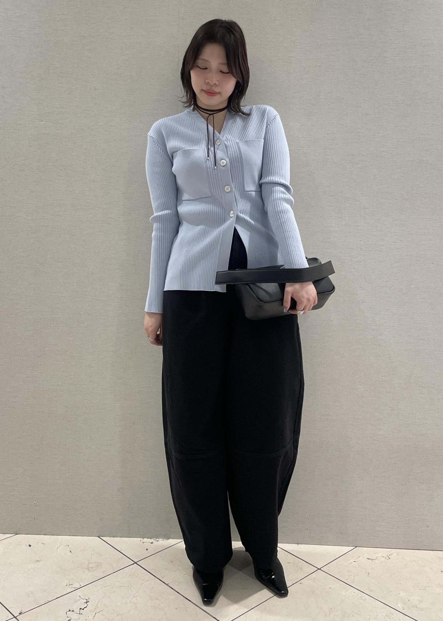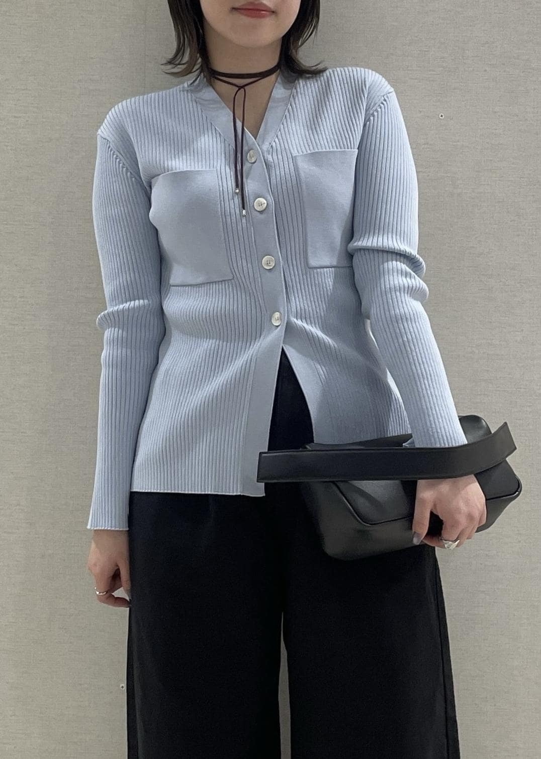EMOELLE【EMOELLE】ポケットリブカーディガンサックス / F¥26,400レビューリブ素材で柔らかい着心地ですが、ハリ感もあるのでラインを拾いすぎないのが嬉しいポイントです☺︎