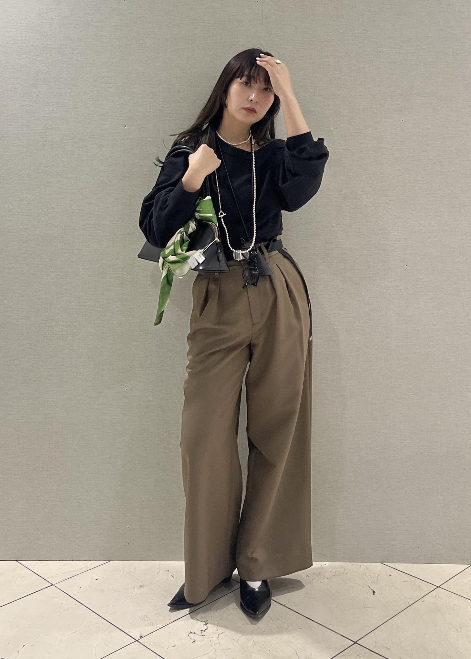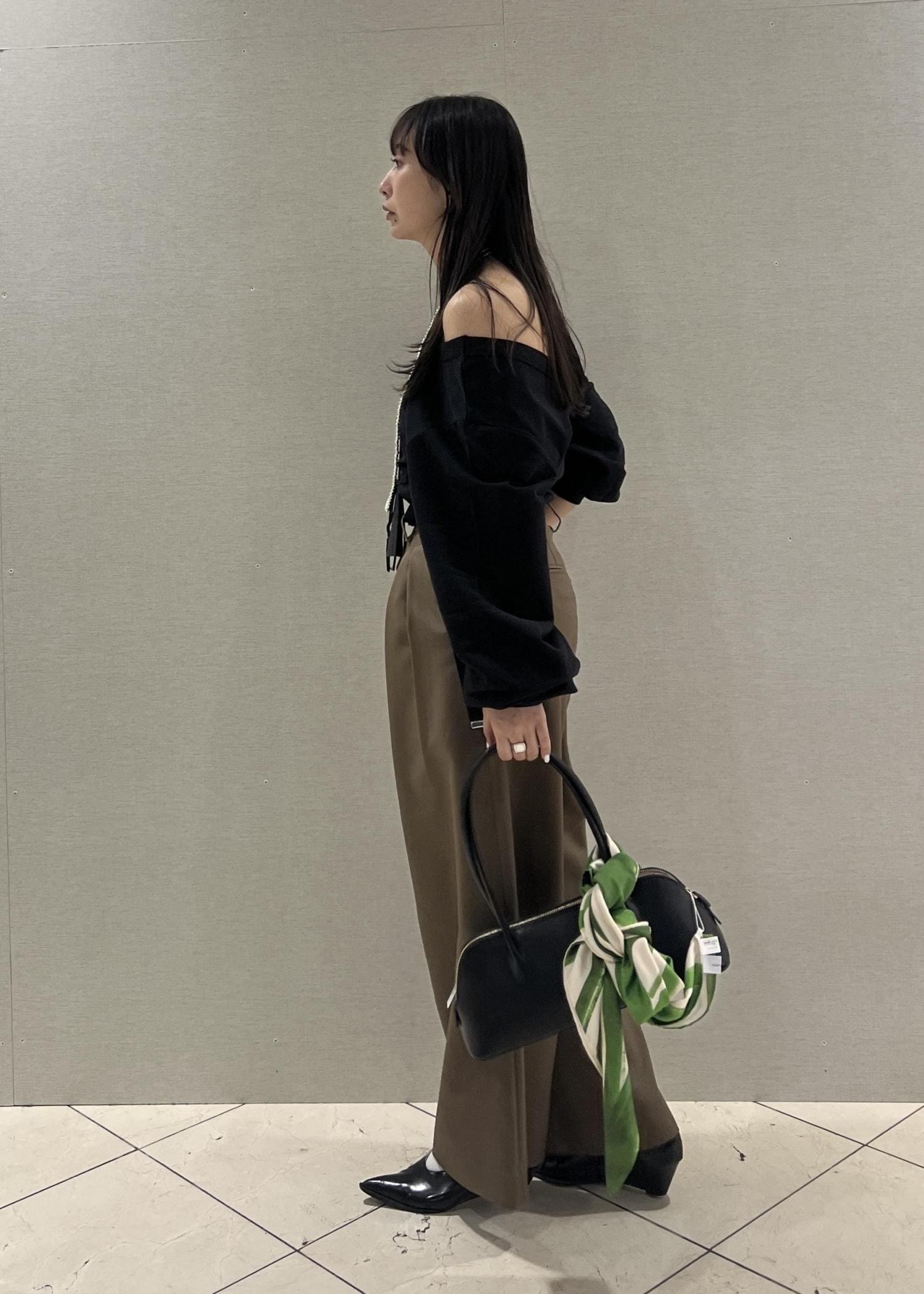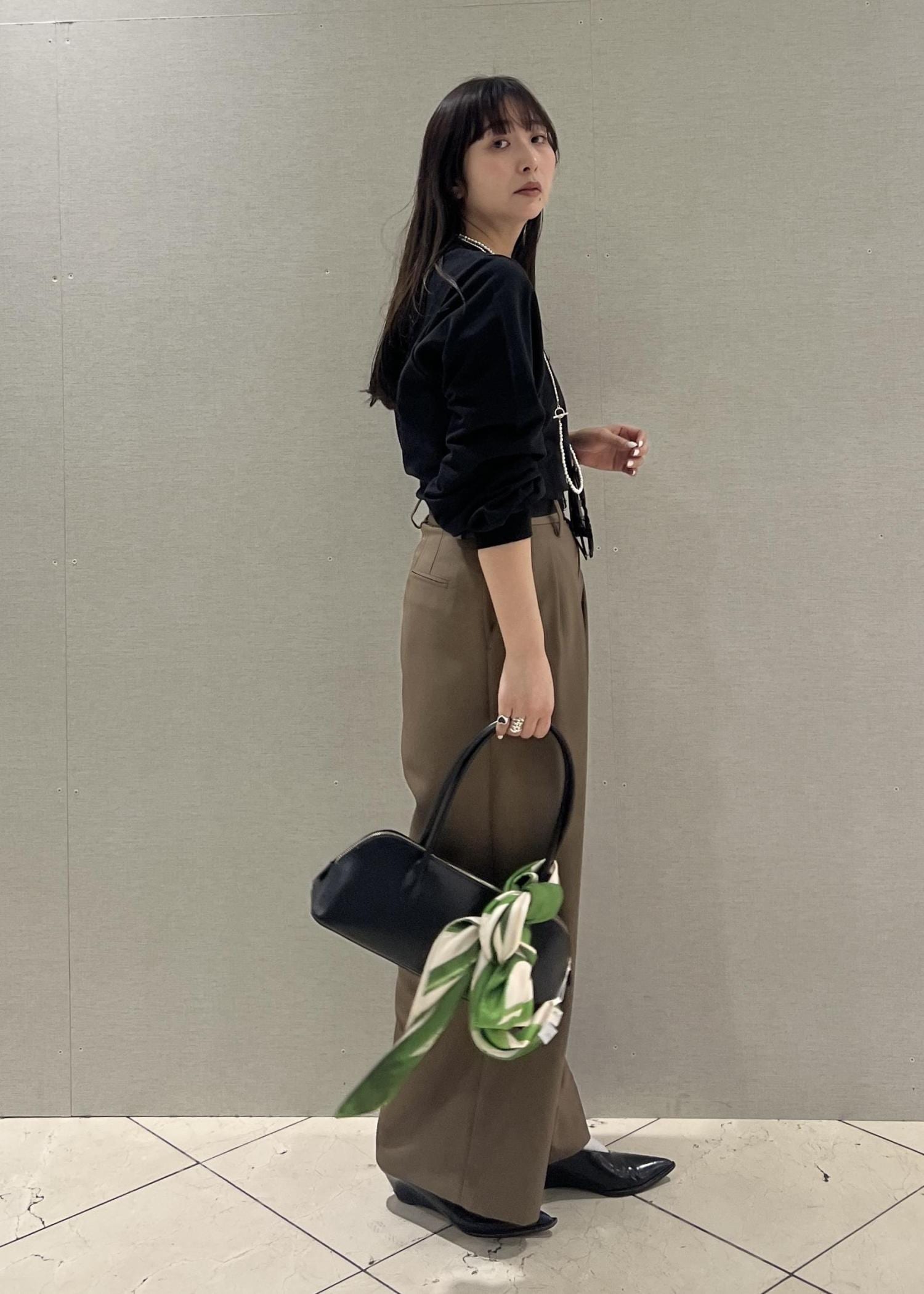 ハンドバッグにスカーフを巻いて大人の女性を演出しました!