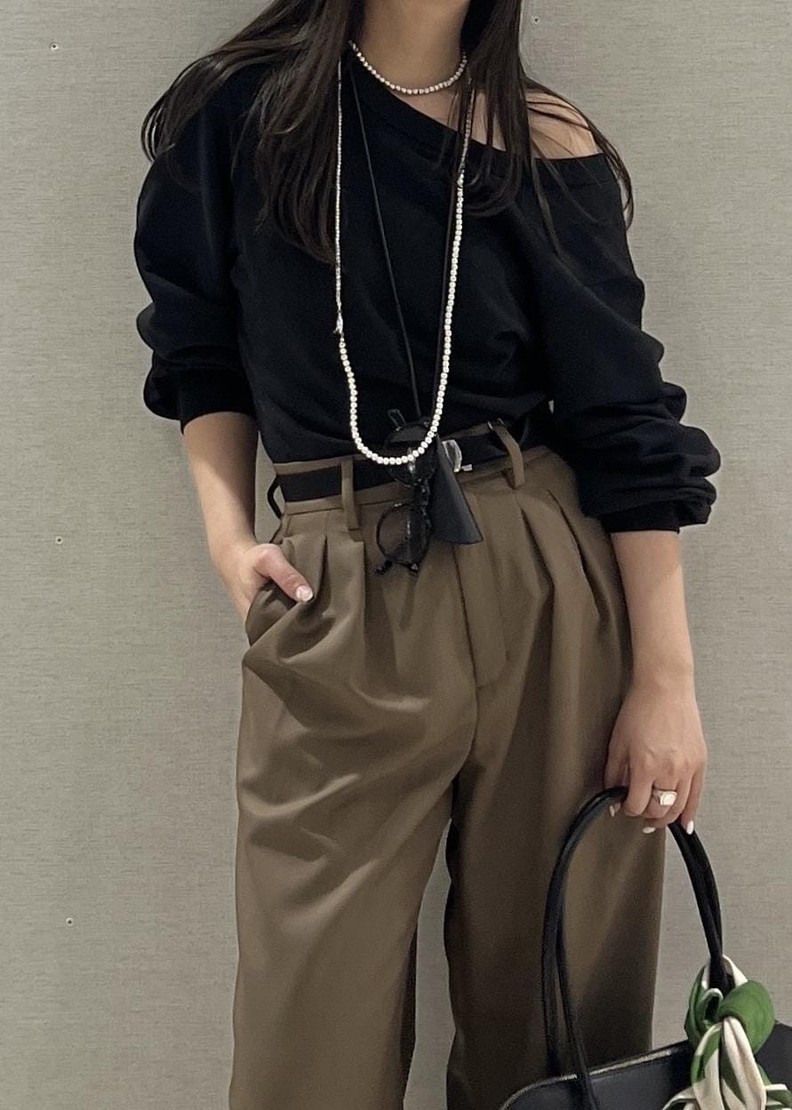 ヤング感になりすぎないよう、スラックスと合わせ