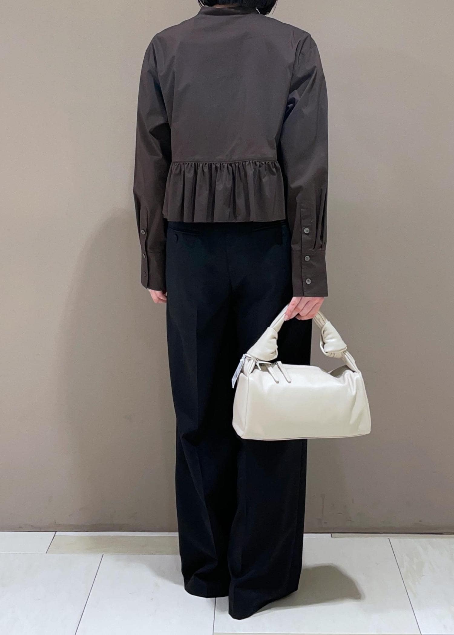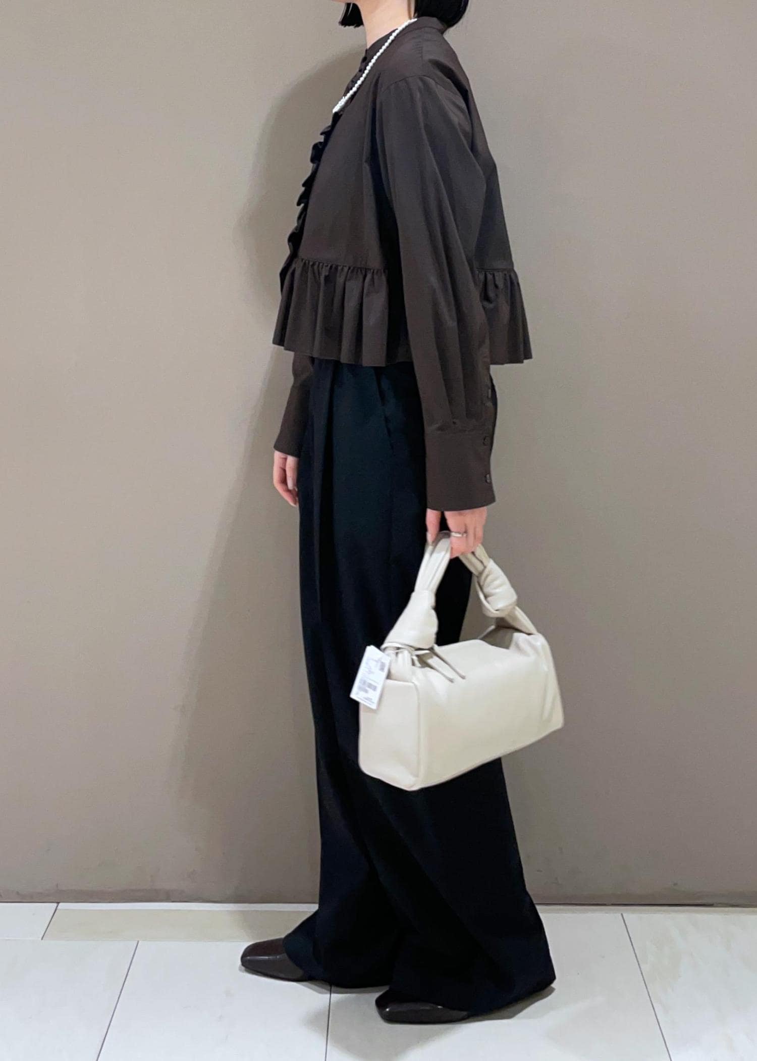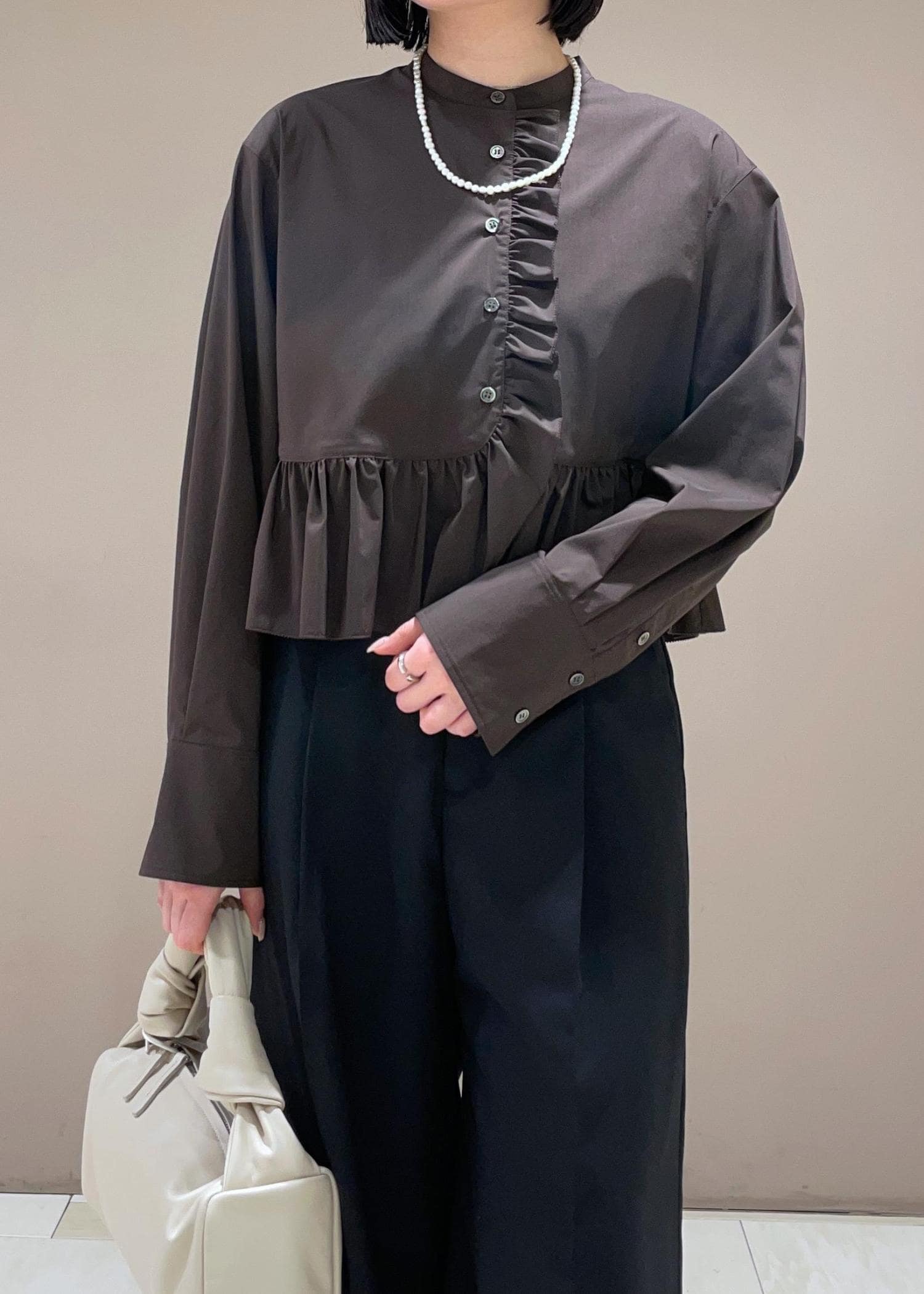 夏のハーフスリーブがとっても人気だったフリルブラウス。新色のブラウンは、より大人っぽくブラウスが着られて最高❤︎
