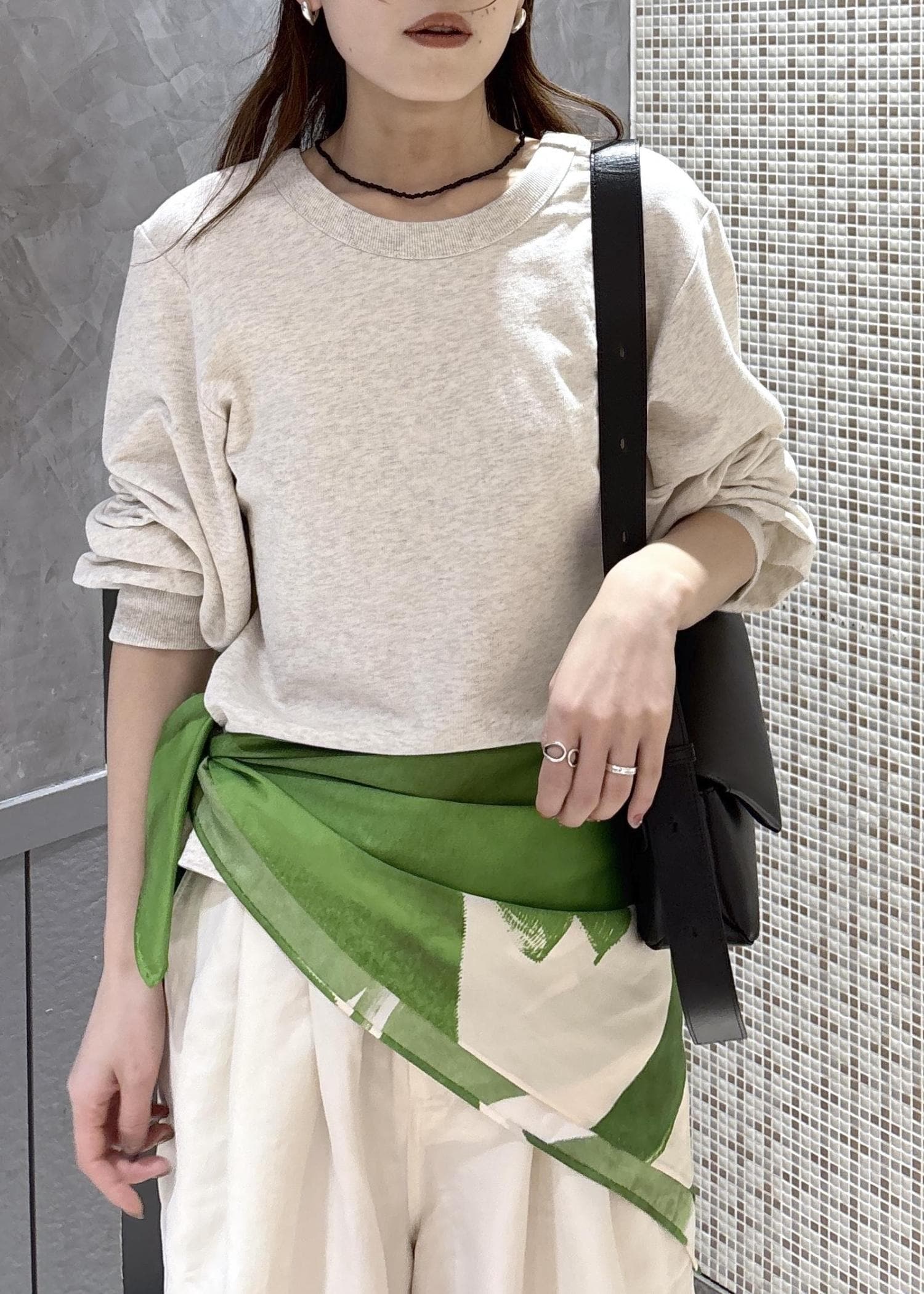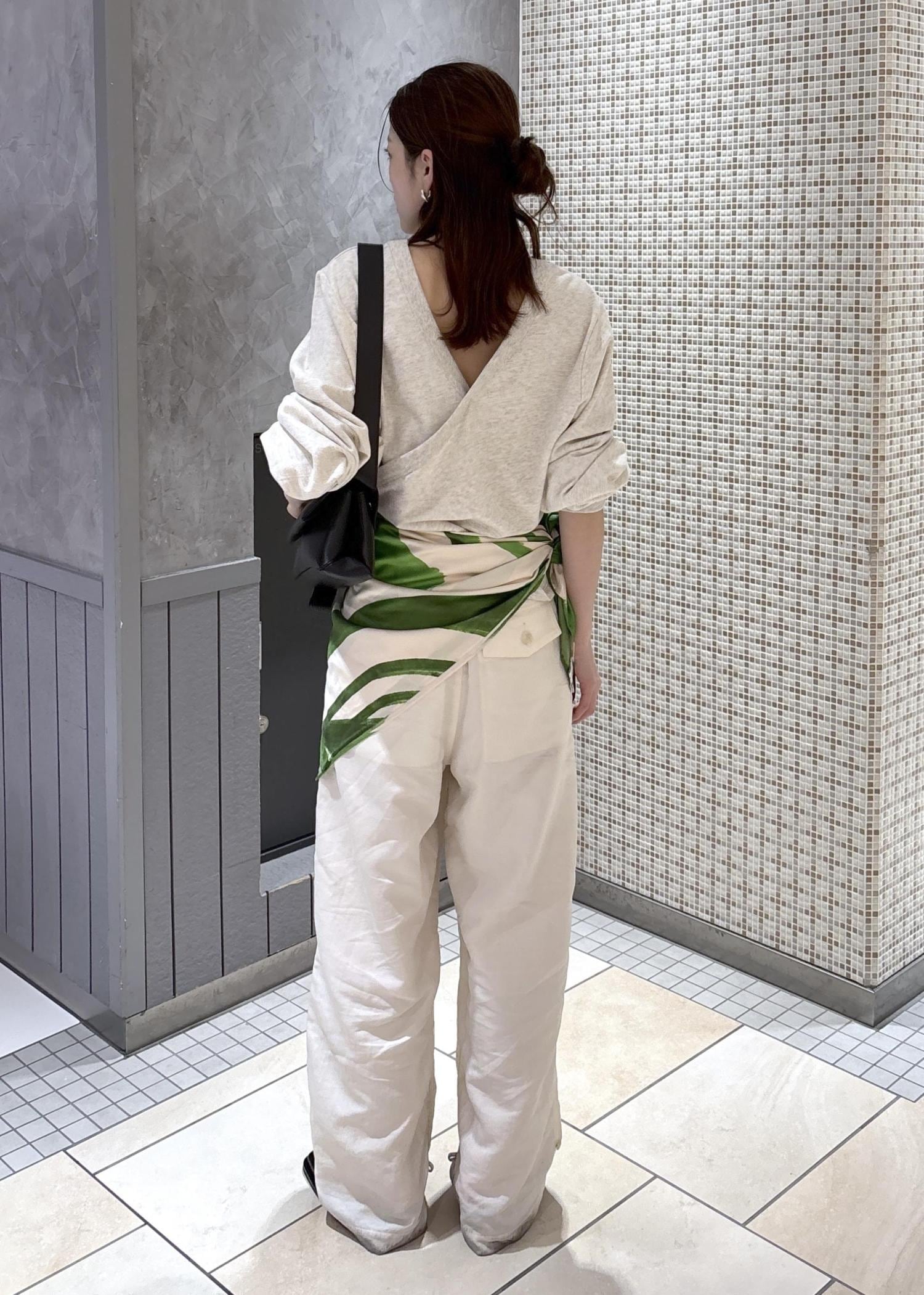 大判スカーフは腰に巻いても、ビスチェ風にもなどアレンジしやすいのでとっても使えますよ◎