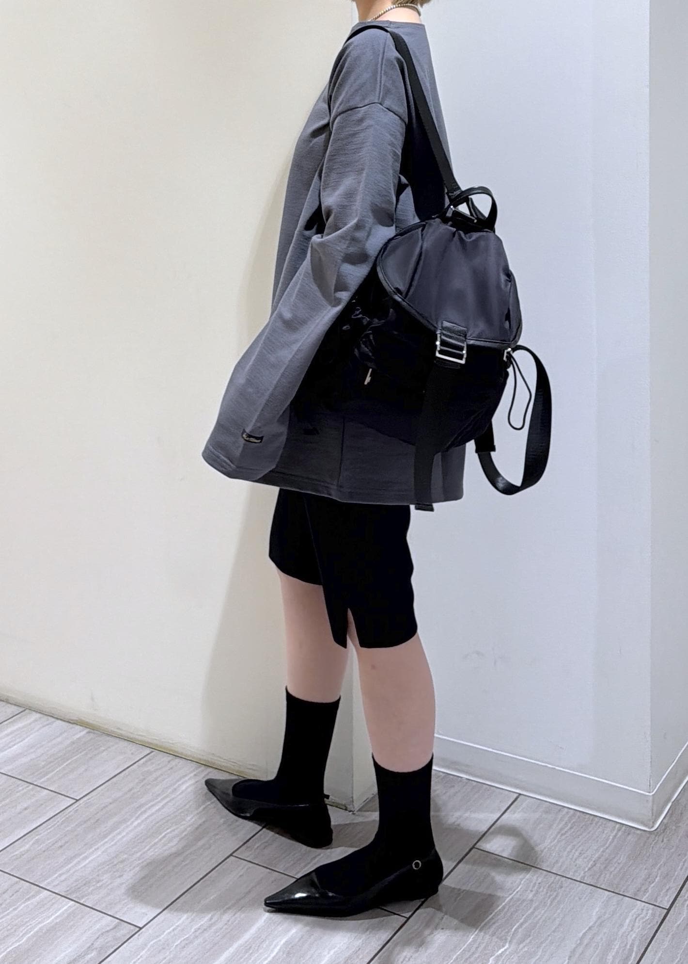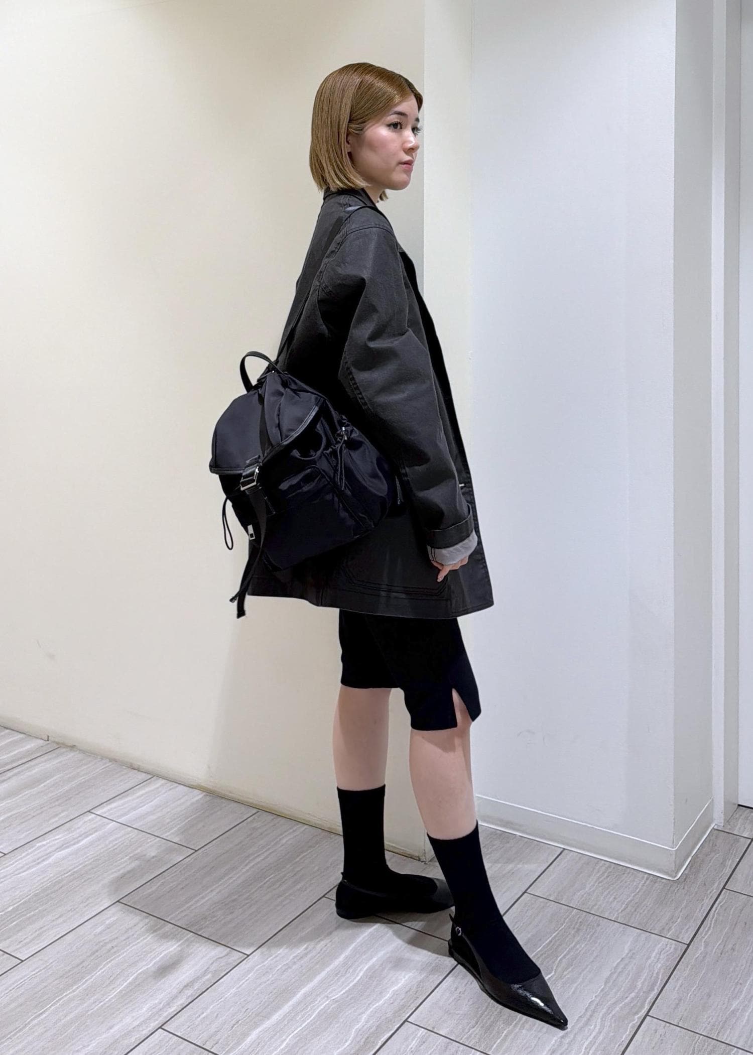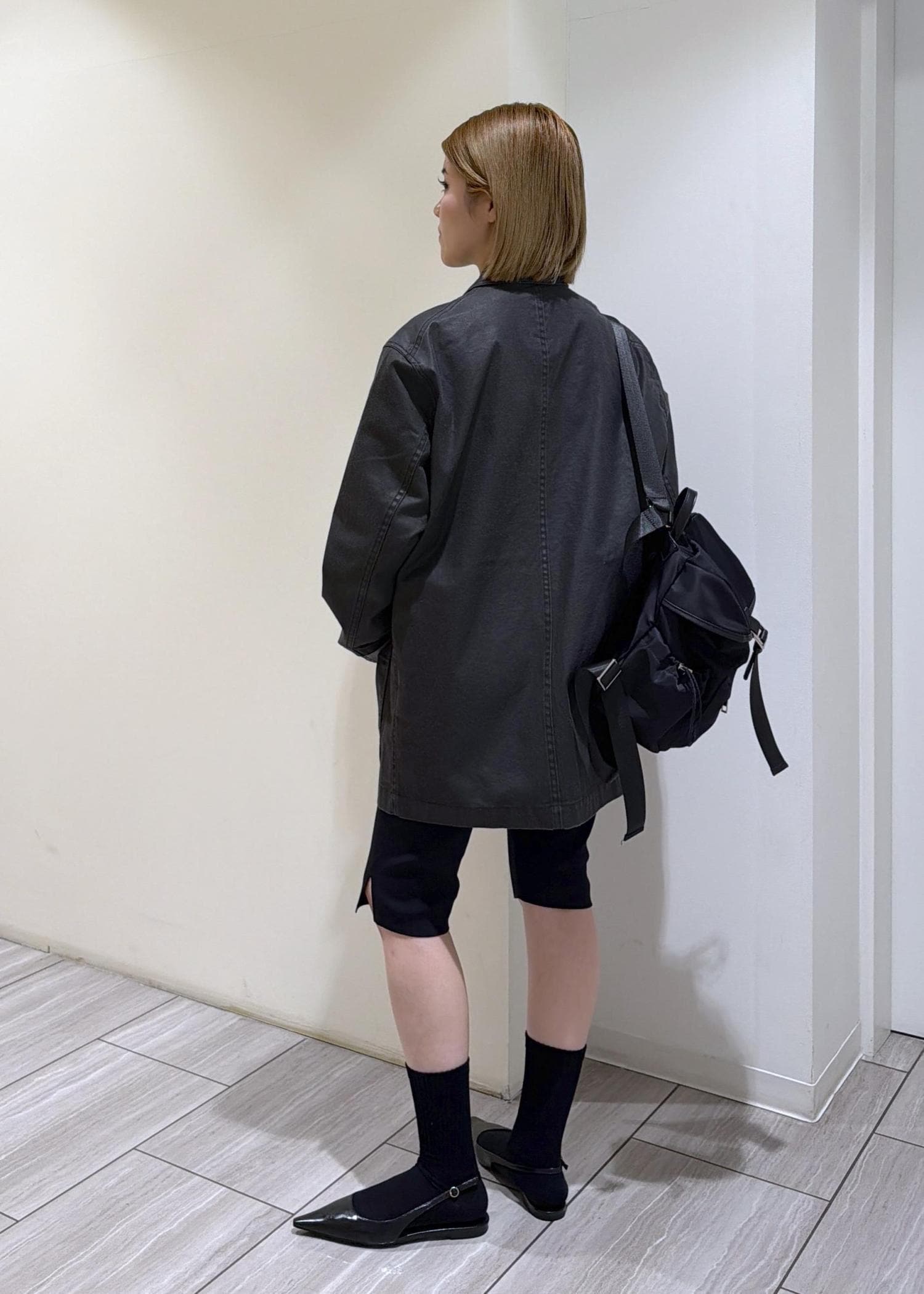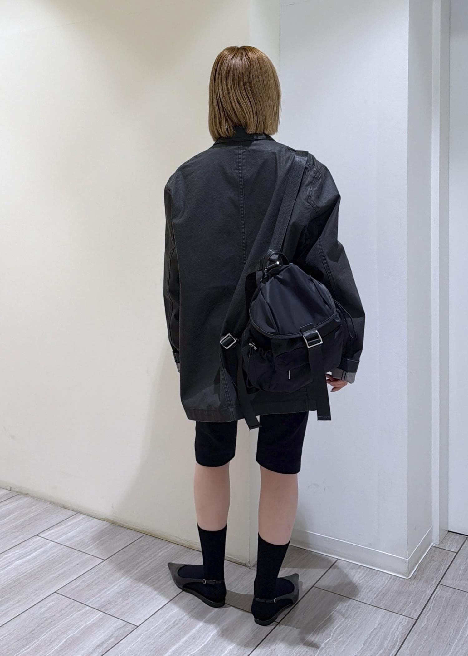カジュアルなイメージですがコンパクトで合わせやすく、光沢のある生地なのできれいめスタイリングにあえて合わせるのもおすすめです◯