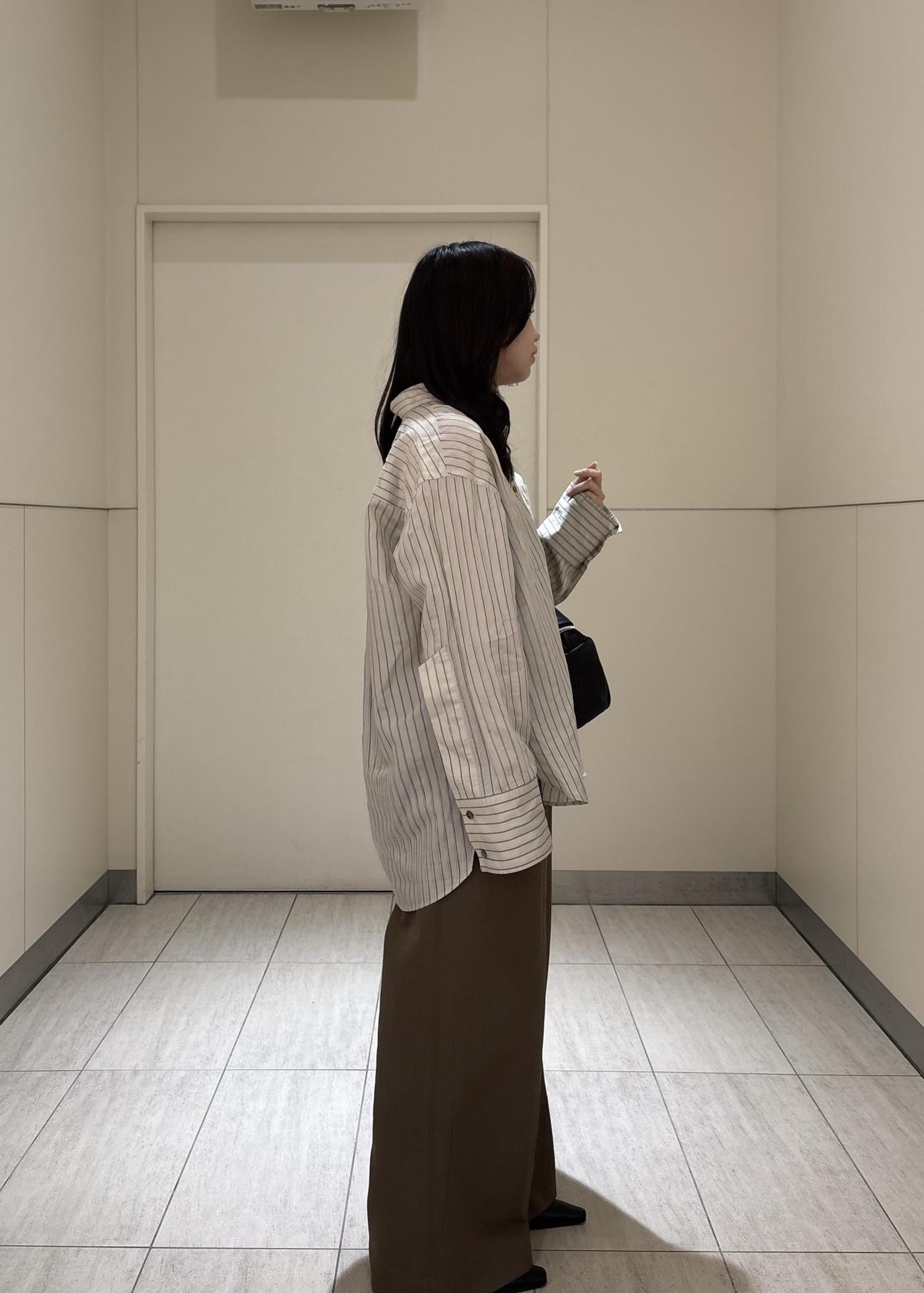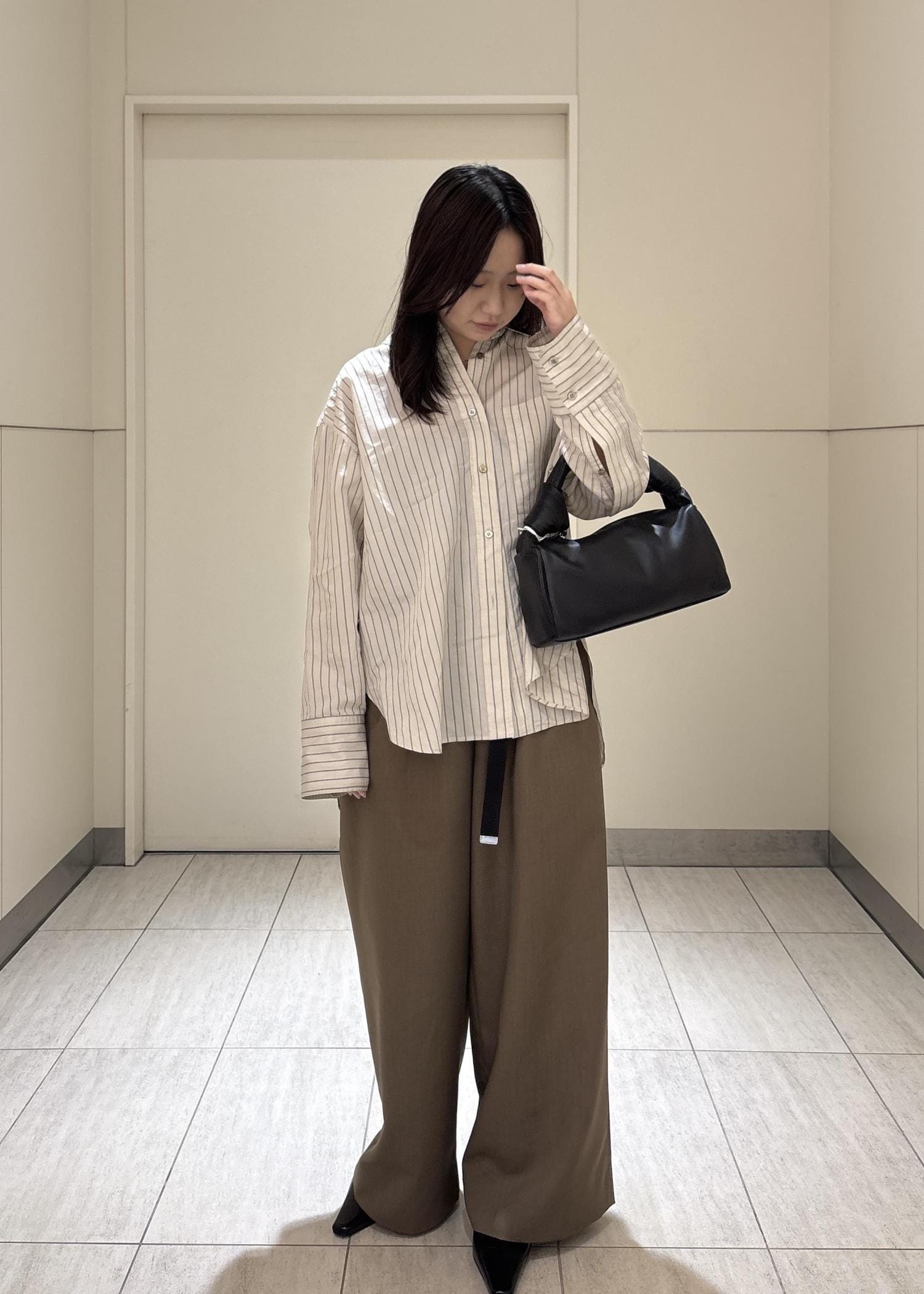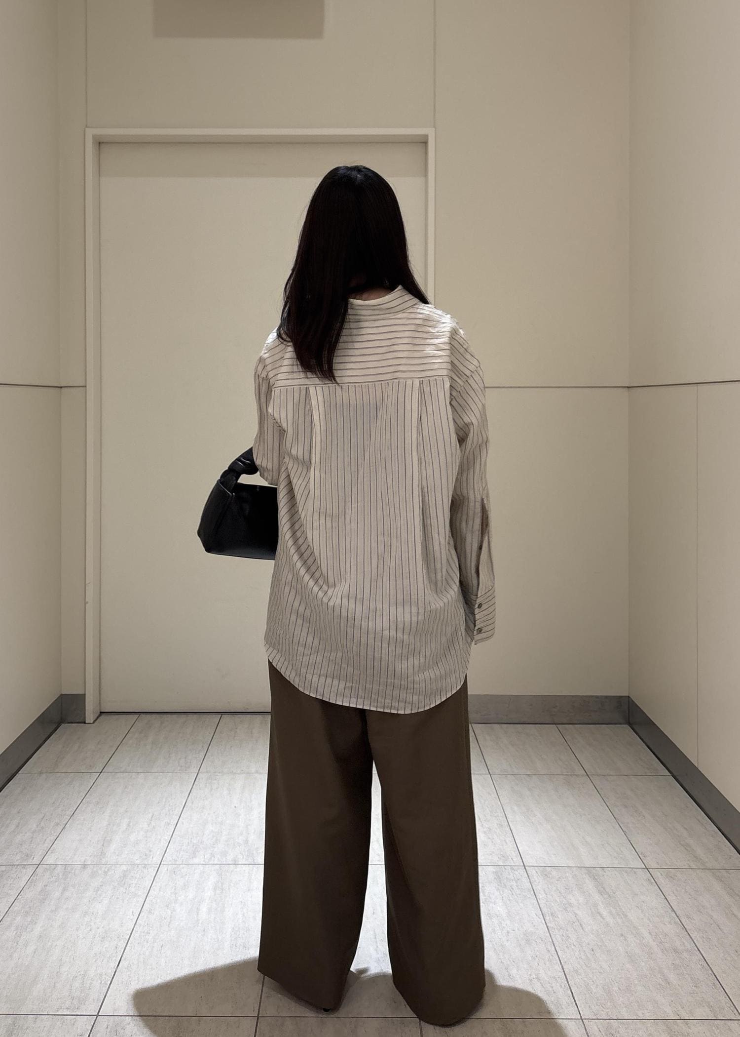 ストライプシャツに綺麗めなパンツを合わせて、大人カジュアルコーデを組んでみました!