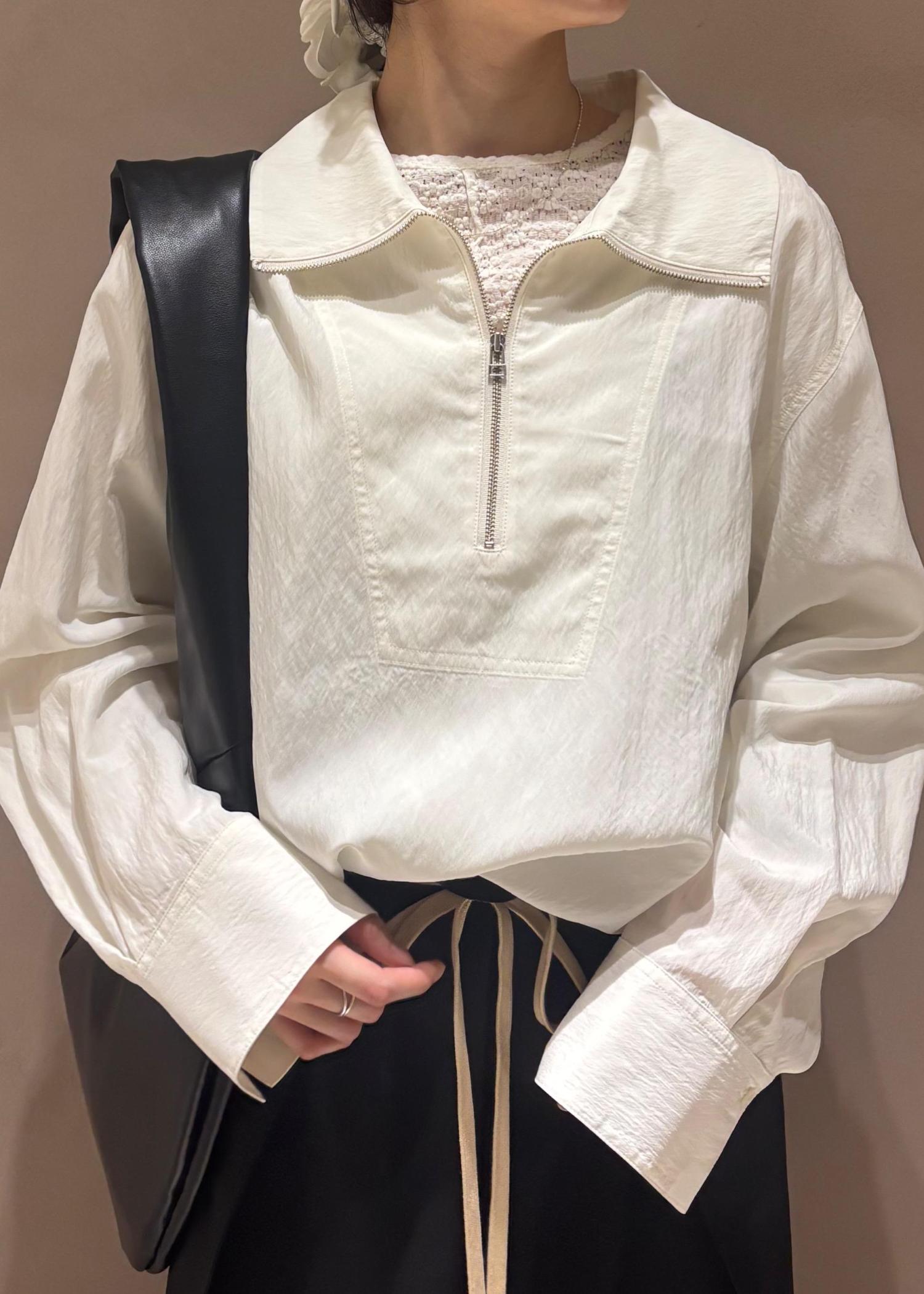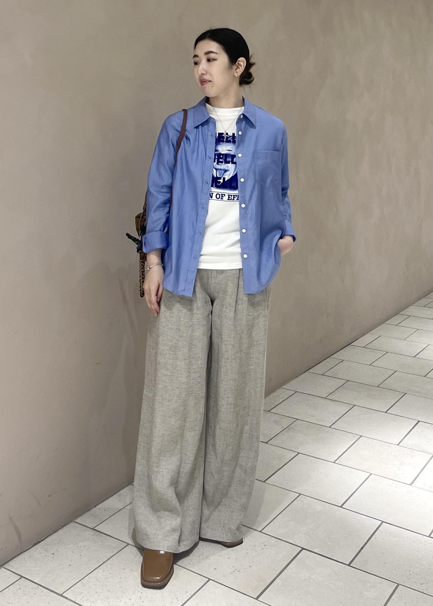 生地感が軽くさらっとしているので、色々なシーンでさっと着やすい1枚です!白はかなり透け感があるので、ブラトップや透け感を活かして柄のあるTシャツなどをレイヤードしても可愛いです☺︎