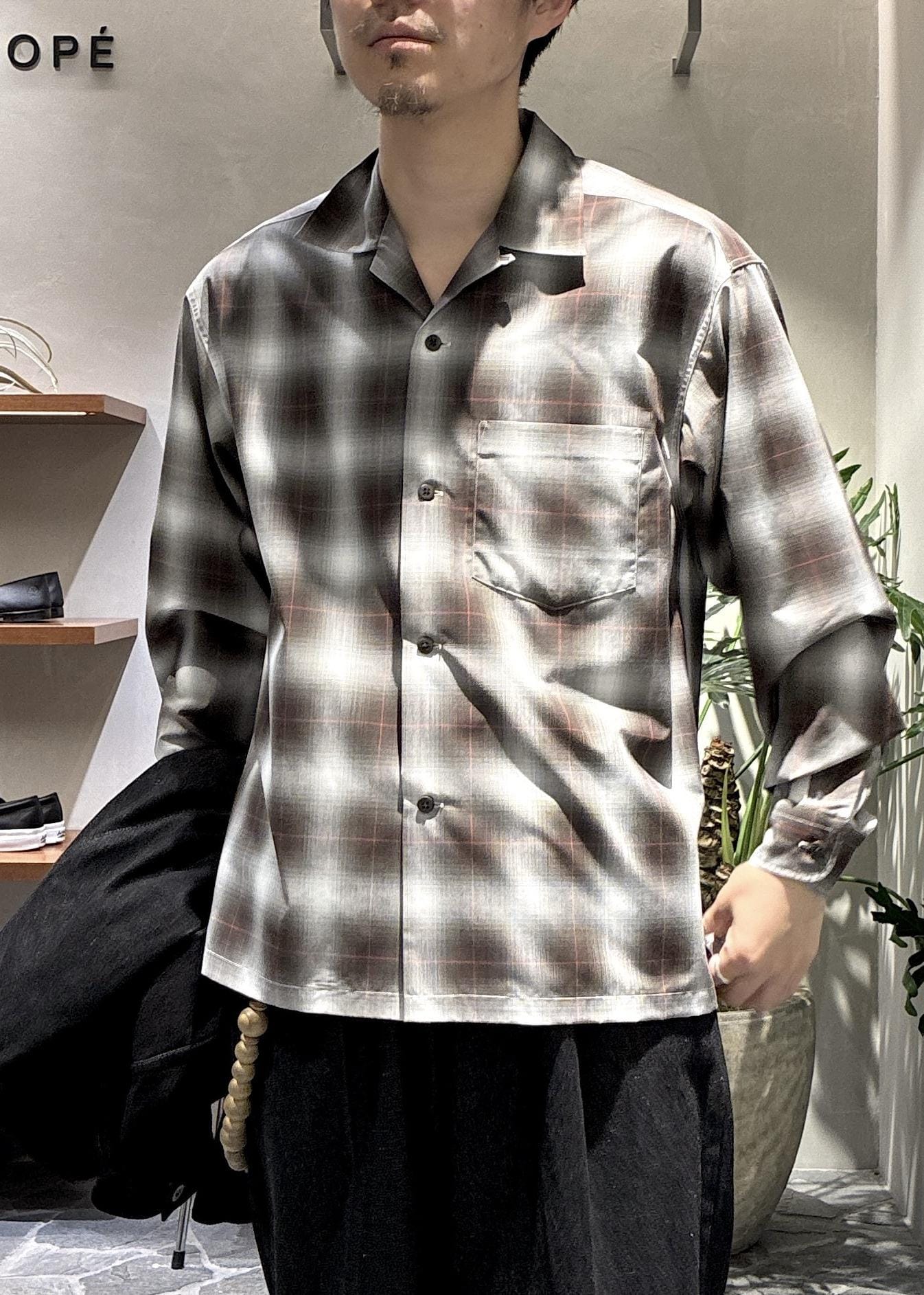 ADAM ET ROPÉ HOMMEオンブレチェック オープンカラーシャツブラウン系 / M¥17,600レビュー程よくゆったりめのサイズ感で、僕自身肩幅がありますがMでも余裕を持って着用できました。シーズンレスで使いやすく、軽い着心地です。