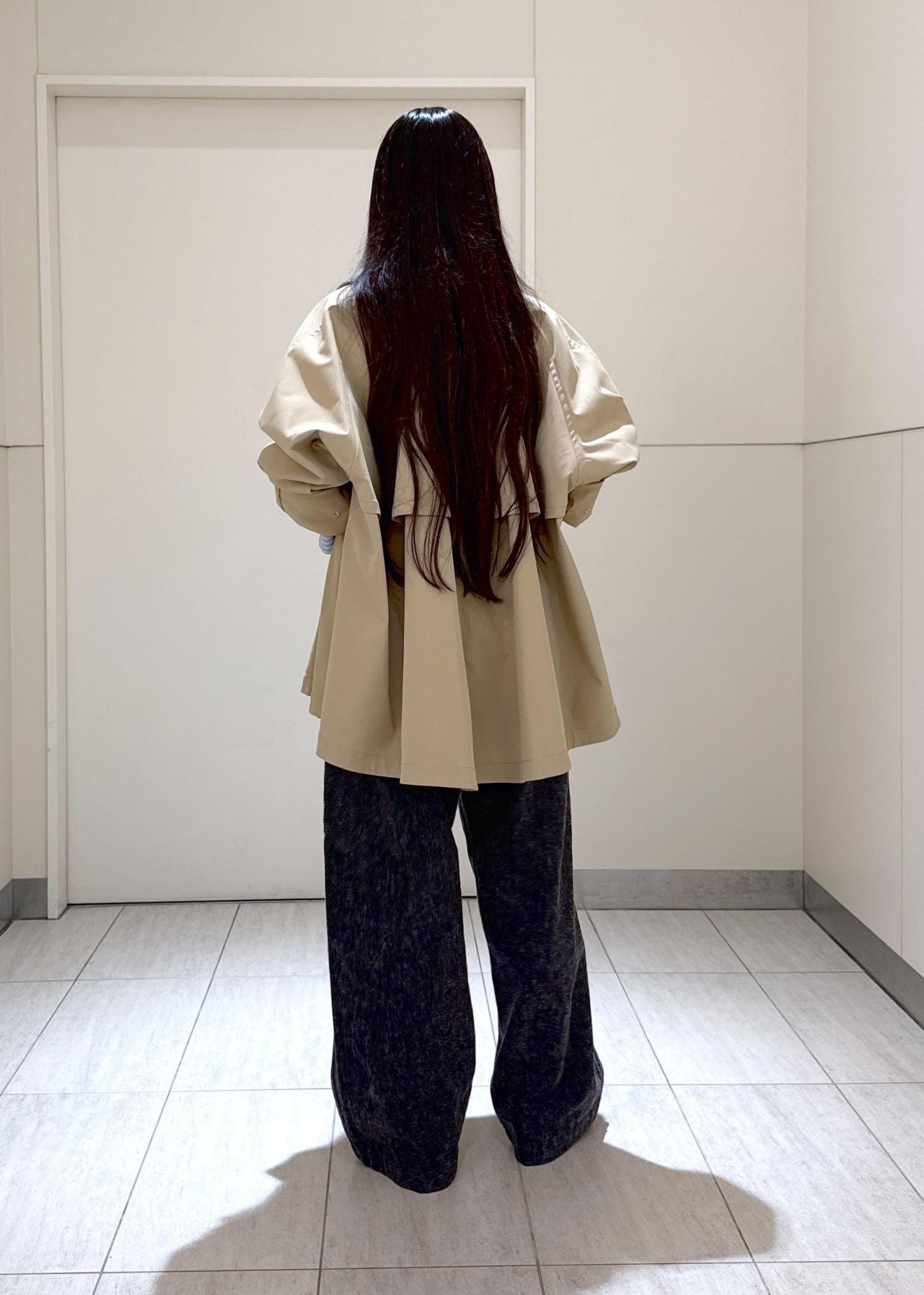 ADAM ET ROPÉ FEMMEフレアーミドルトレンチコートベージュ / F¥33,000レビュー少しAラインのシルエットで身幅もゆったりです。
