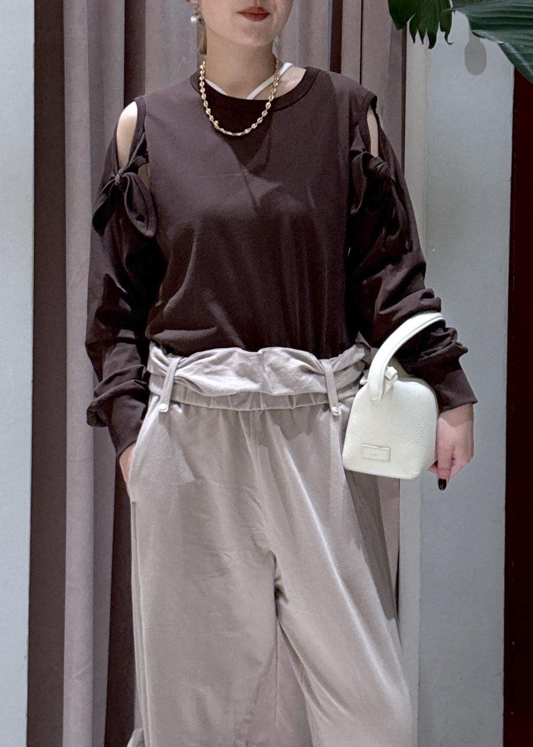 ADAM ET ROPÉ FEMME2WAYノットプルオーバーダークブラウン / F¥15,400レビュー全体的にゆとりのあるサイズ感です。インナーが見えるので、カップ付きのインナーを合わせての着用がお勧めです!