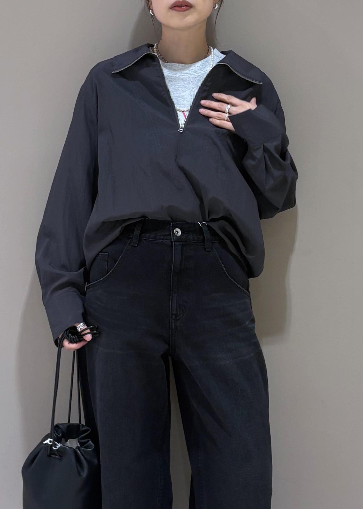 ハーフジップのブラウス。
