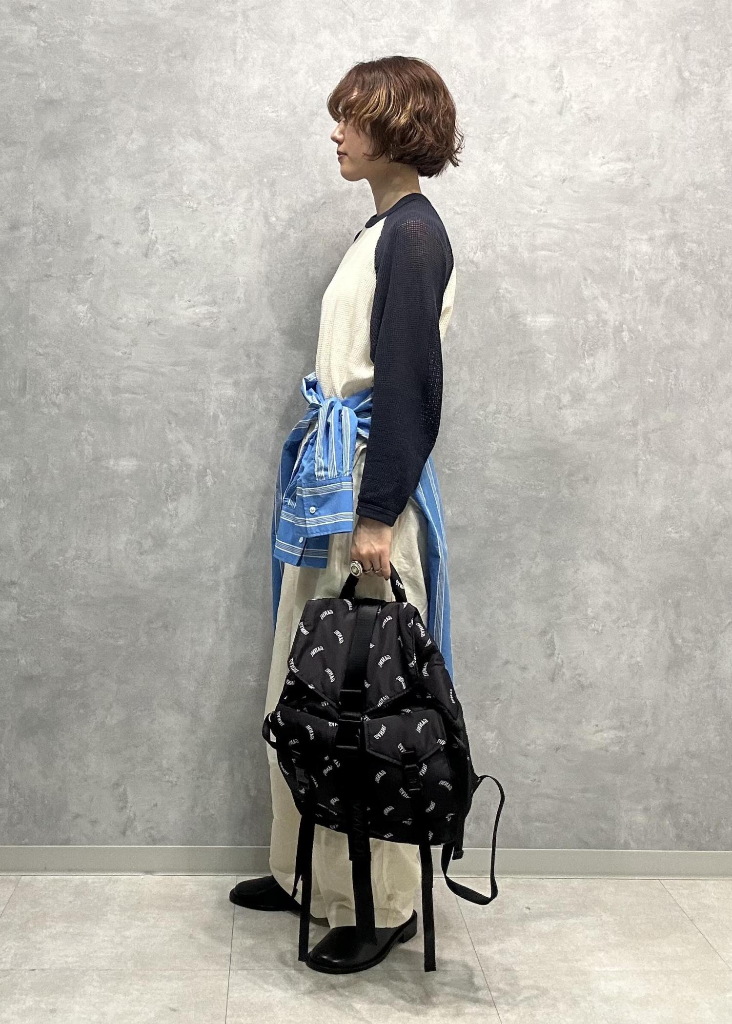 モノトーンですが存在感があるバックパックを主役に、カジュアルでボーイッシュな雰囲気でまとめました。