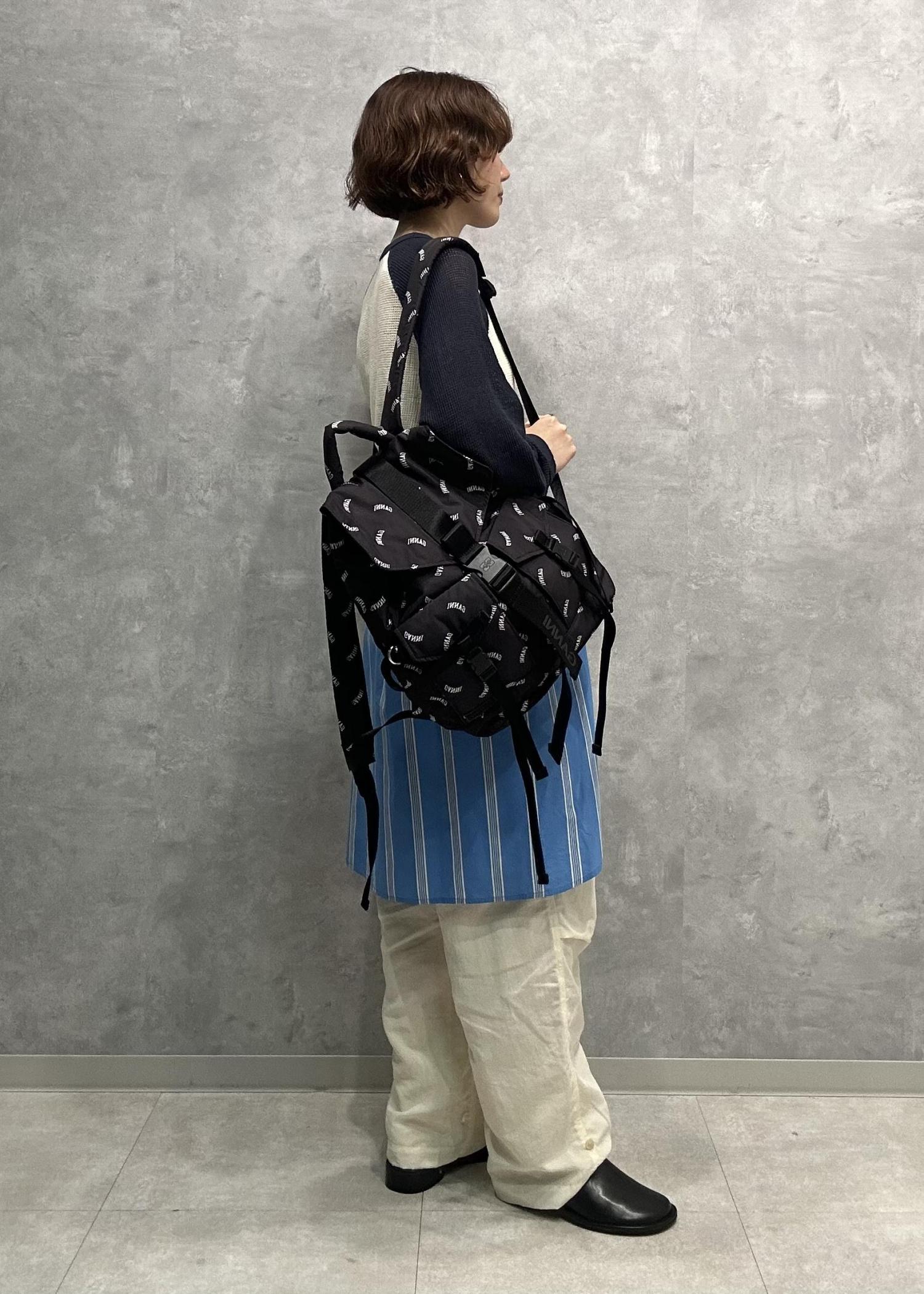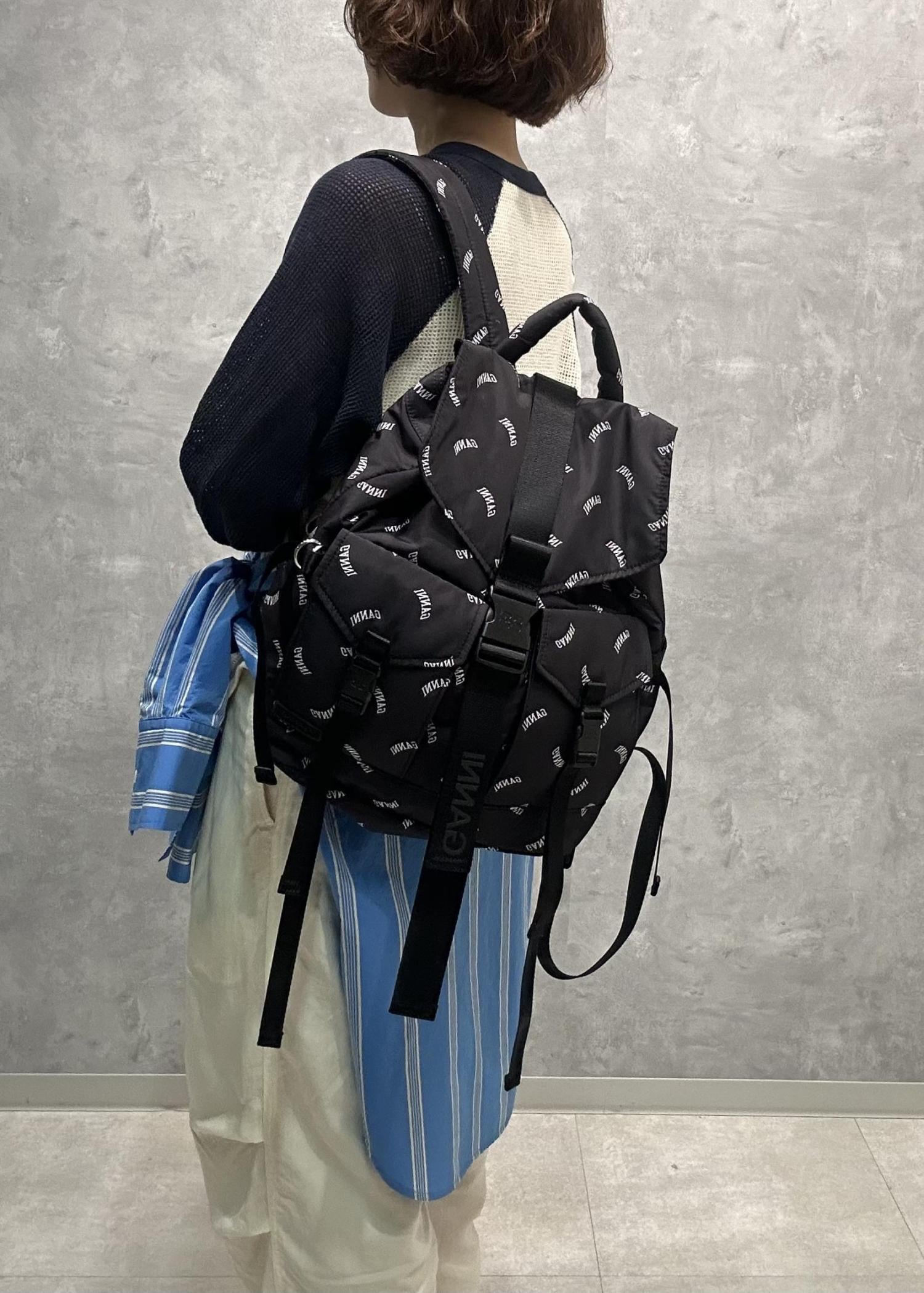 今回は、GANNI Re-Tech Logo Print Backpack のご紹介です。