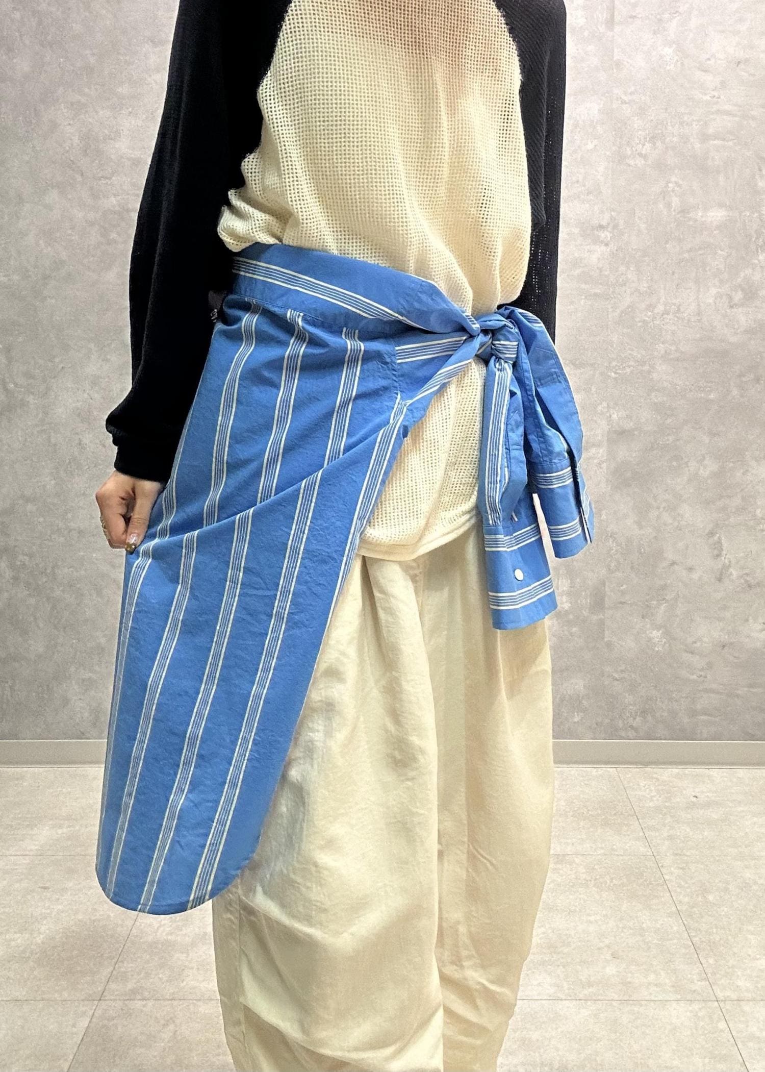 ボタンでウエストのアレンジが出来るので、様々な着方が楽しめます。 -