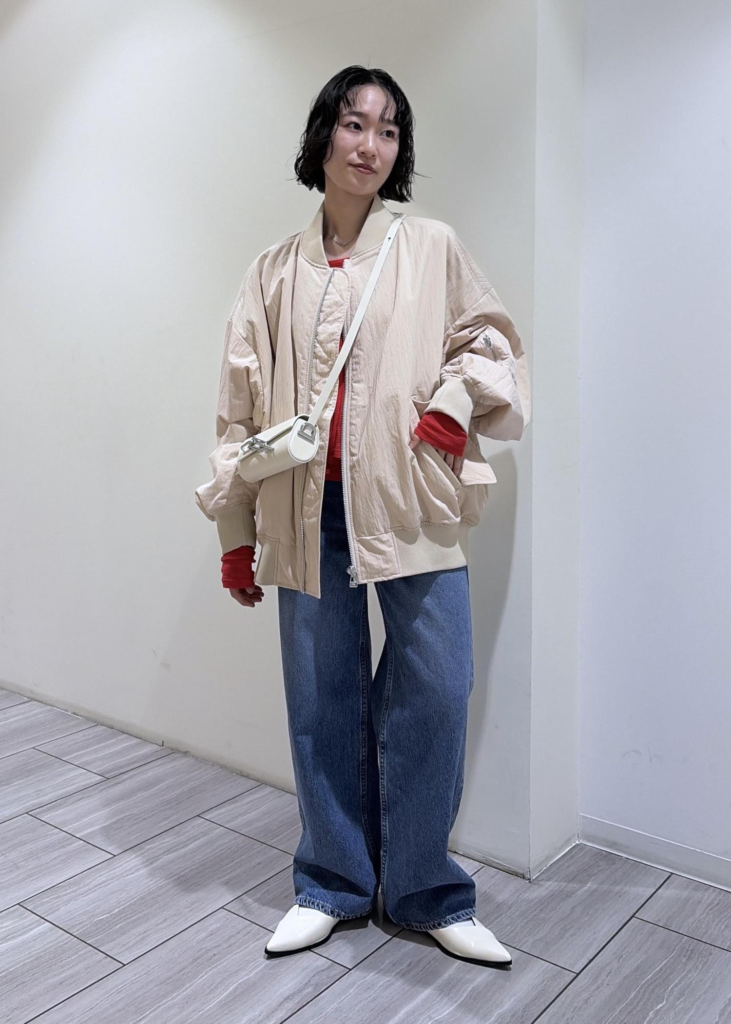 ADAM ET ROPÉ FEMME【PROVOKE for ADAM ET ROPE' 】別注 MA-1ベージュ系 / F¥28,600レビューゆるっとご着用頂けるアウター。お尻はすっぽり隠れる丈で、身幅も余裕有り!綺麗めにもカジュアルにも合わせて頂けるアイテムです♪