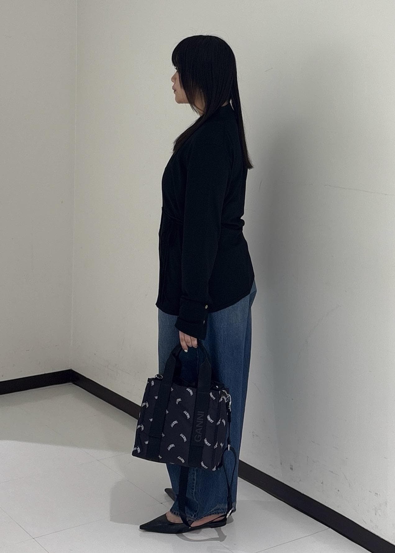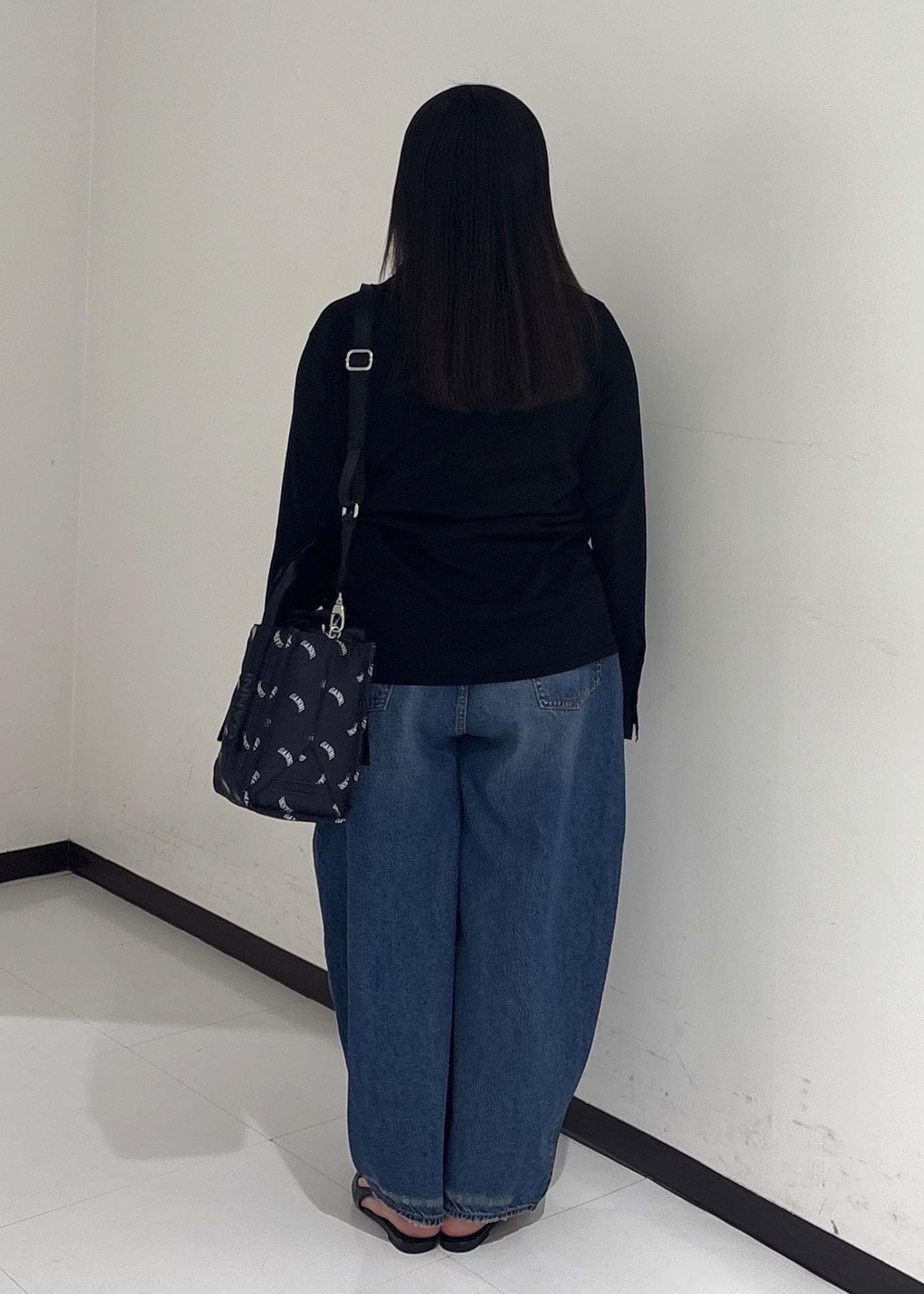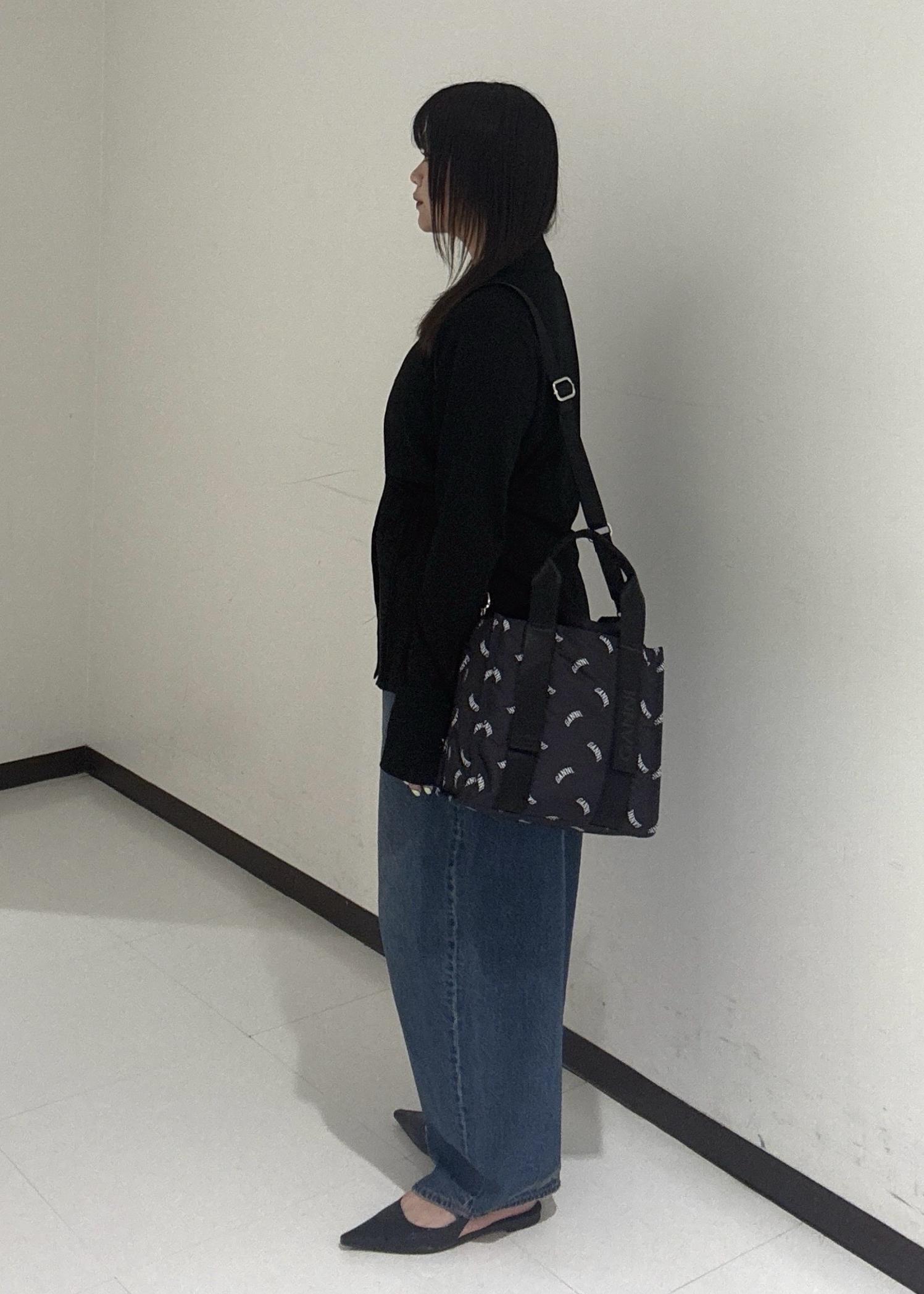 今日は、【GANNI for ADAM ET ROPE'】Re-Tech Logo Print Small Toteを使ったコーデを組んでみました。