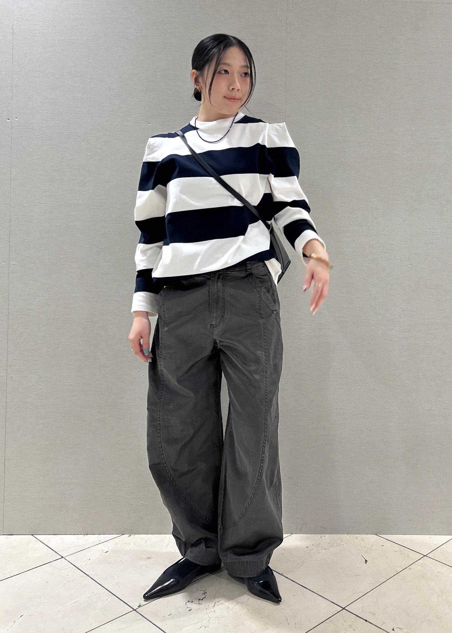 肩のディテールがカジュアル感を抑えてくれるので、ボーダーでもオフ過ぎず素敵です♡ -