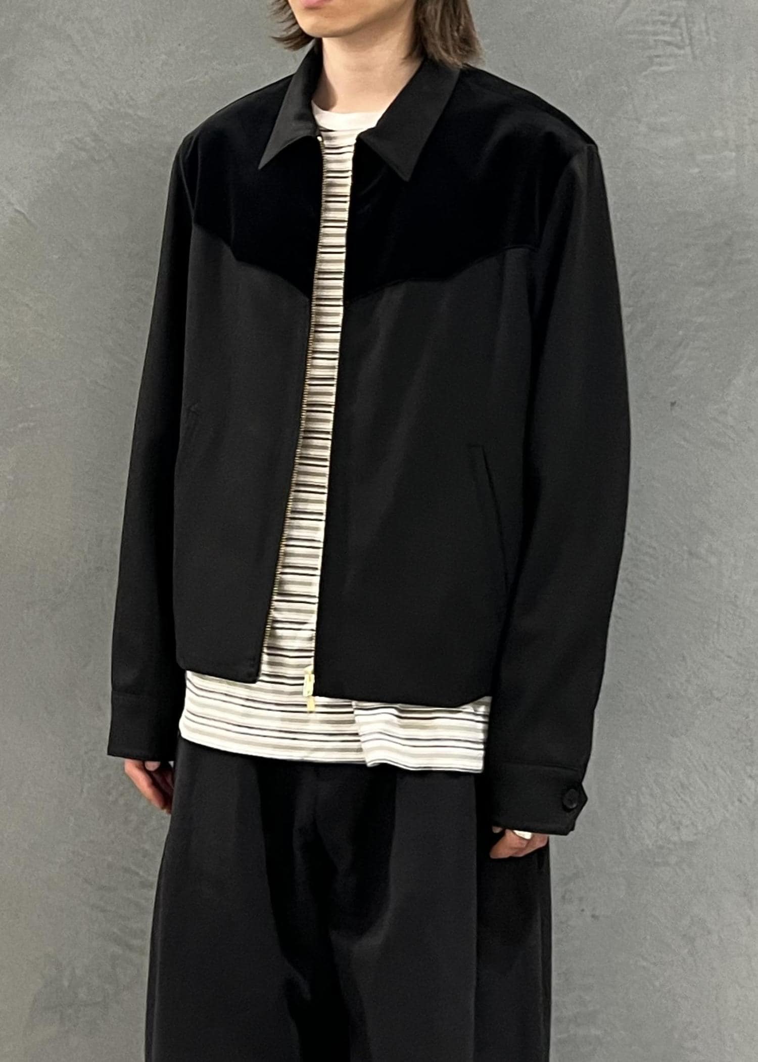 ADAM ET ROPÉ HOMME【TONYWACK/トニーウェック】WOOL VELVET TRIMMED BLOUSON JACKETブラック / L¥61,600レビューテーラードジャケットのような雰囲気のある肩まわり。裏地付きですがさらっとした薄手のアウターです。