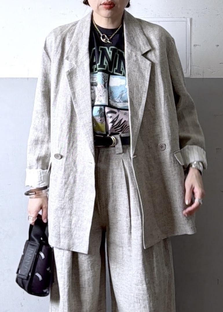 セットアップなんてかっちりし過ぎちゃう!という方にオススメの麻素材のセットアップ。