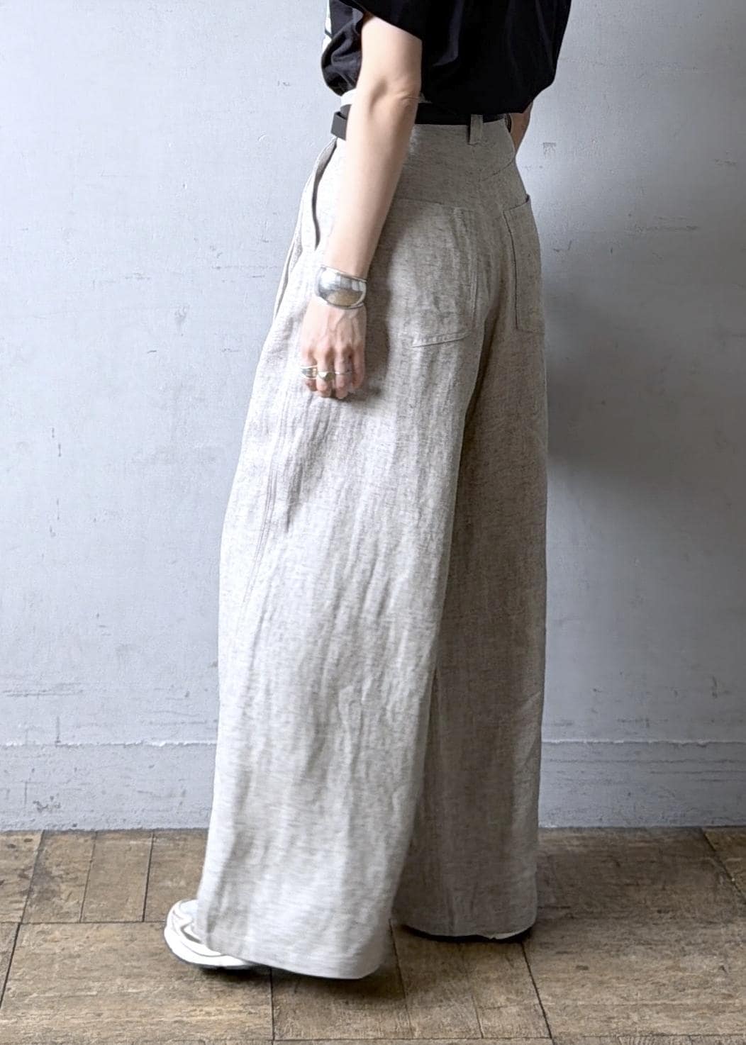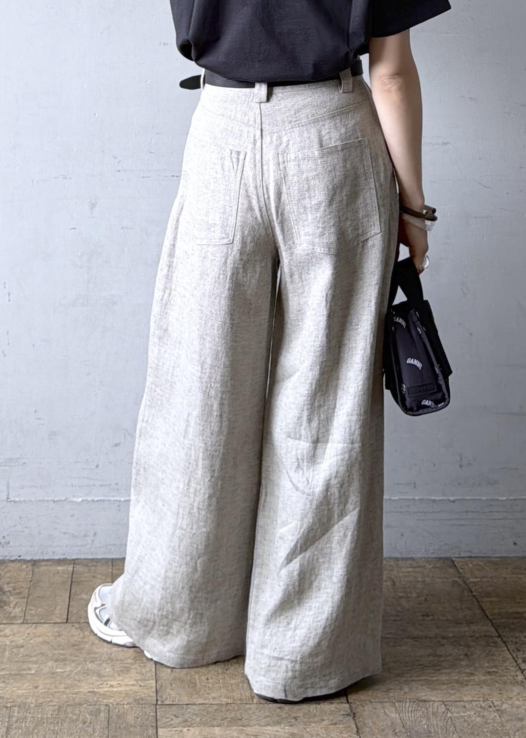 ADAM ET ROPÉ FEMMEリネンタックパンツベージュ / 36¥28,600レビュー脚・ヒップのラインを全く拾わないワイドシルエット。