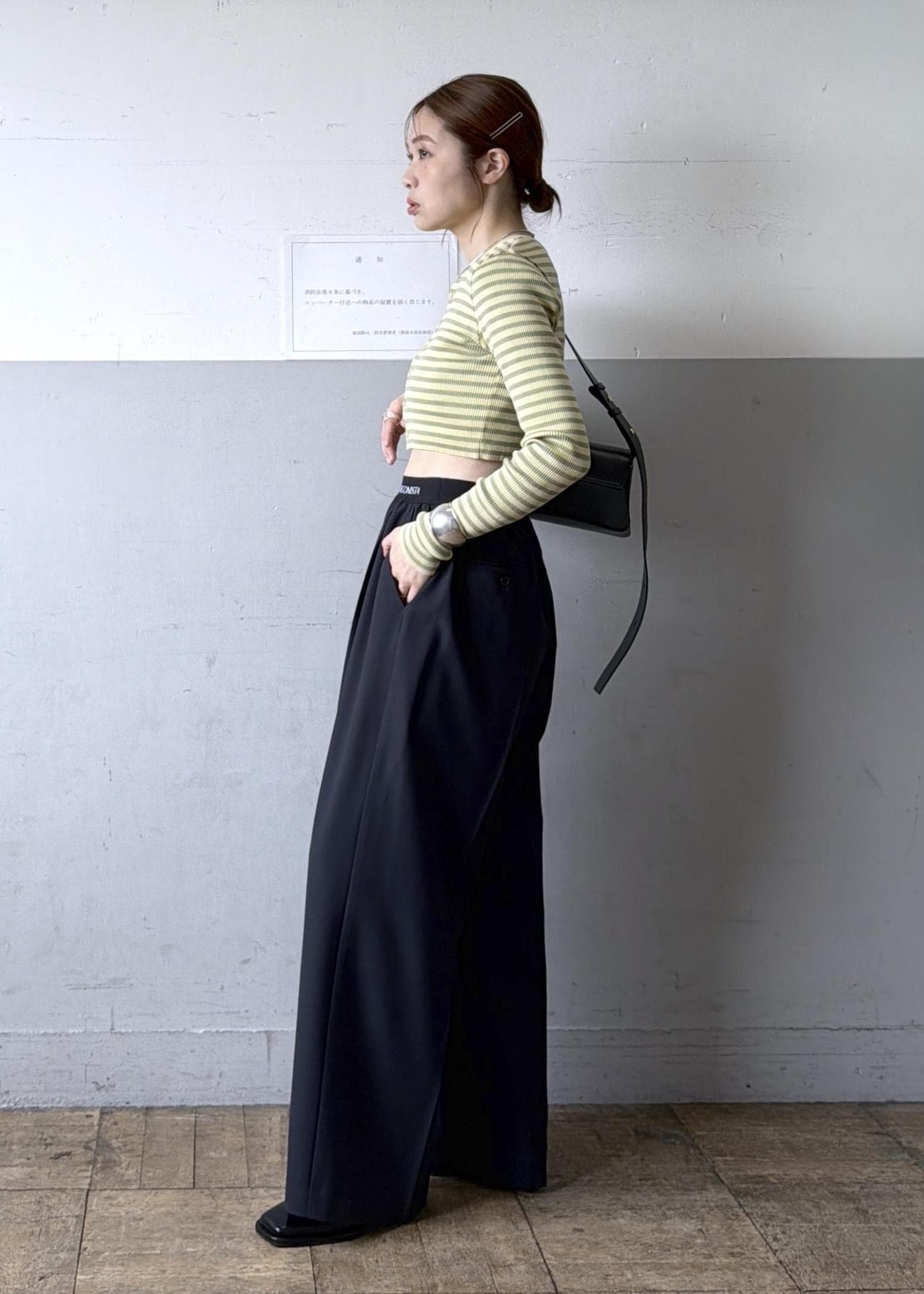 ボリュームのあるボトムにはコンパクトなサイズ感のトップスが鉄板でかわいい&スタイルアップ効果抜群!