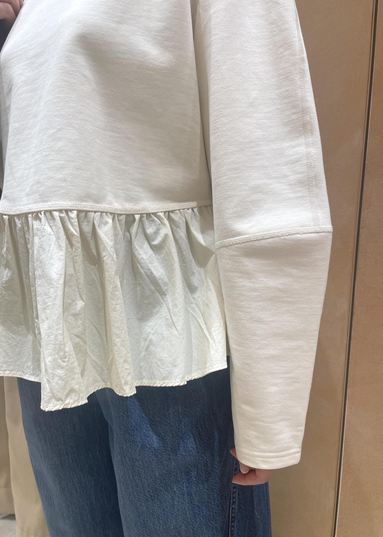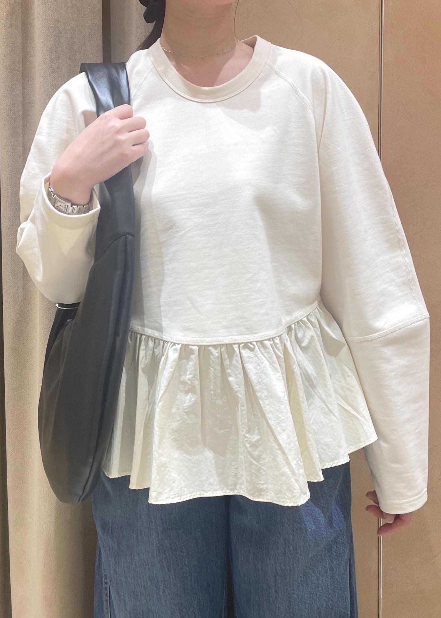 ADAM ET ROPÉ FEMMEラグランスリーブペプラムプルオーバーオフホワイト / F¥15,950レビューペプラムのデザインで1枚で着映えします‼︎スエットの様な素材感でとても着やすいです!コットン、ポリウレタンで肌触りもいいです☺︎ONOFF問わず着用できる1枚になっております☺︎