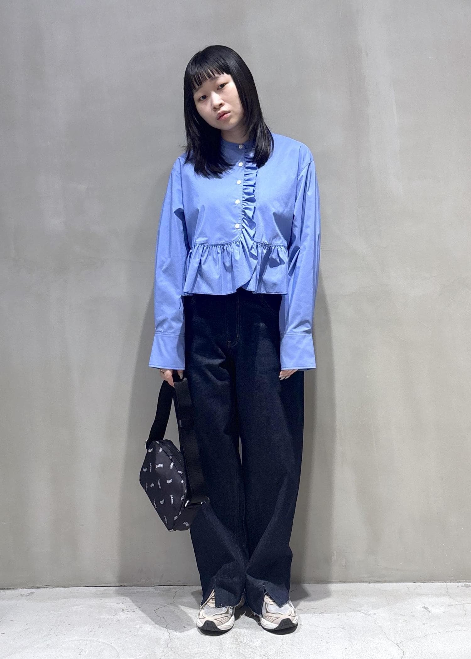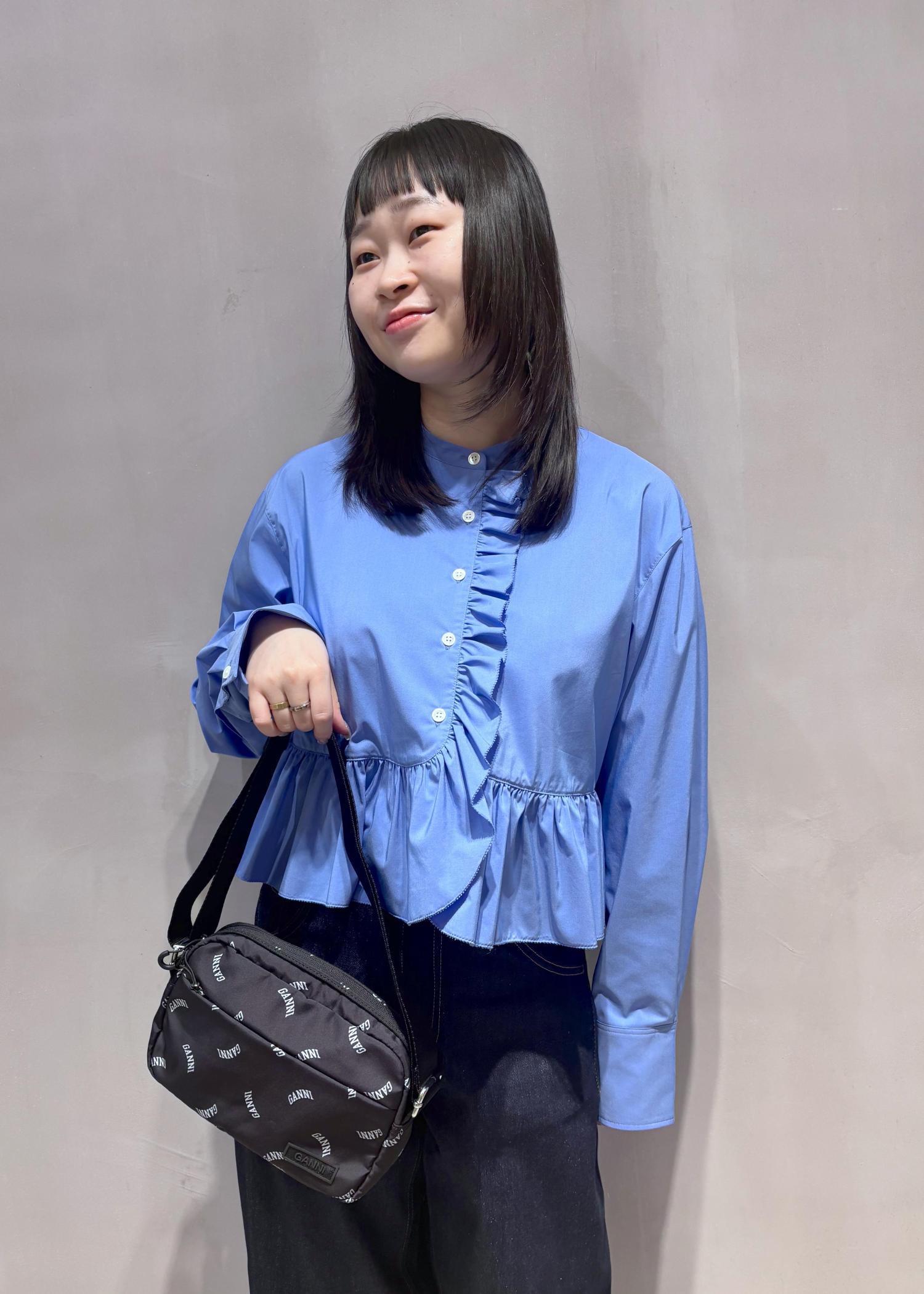 今回はGANNIとの別注バッグを主役に仙台店でも人気のブラウスでスタイリングを作りました!