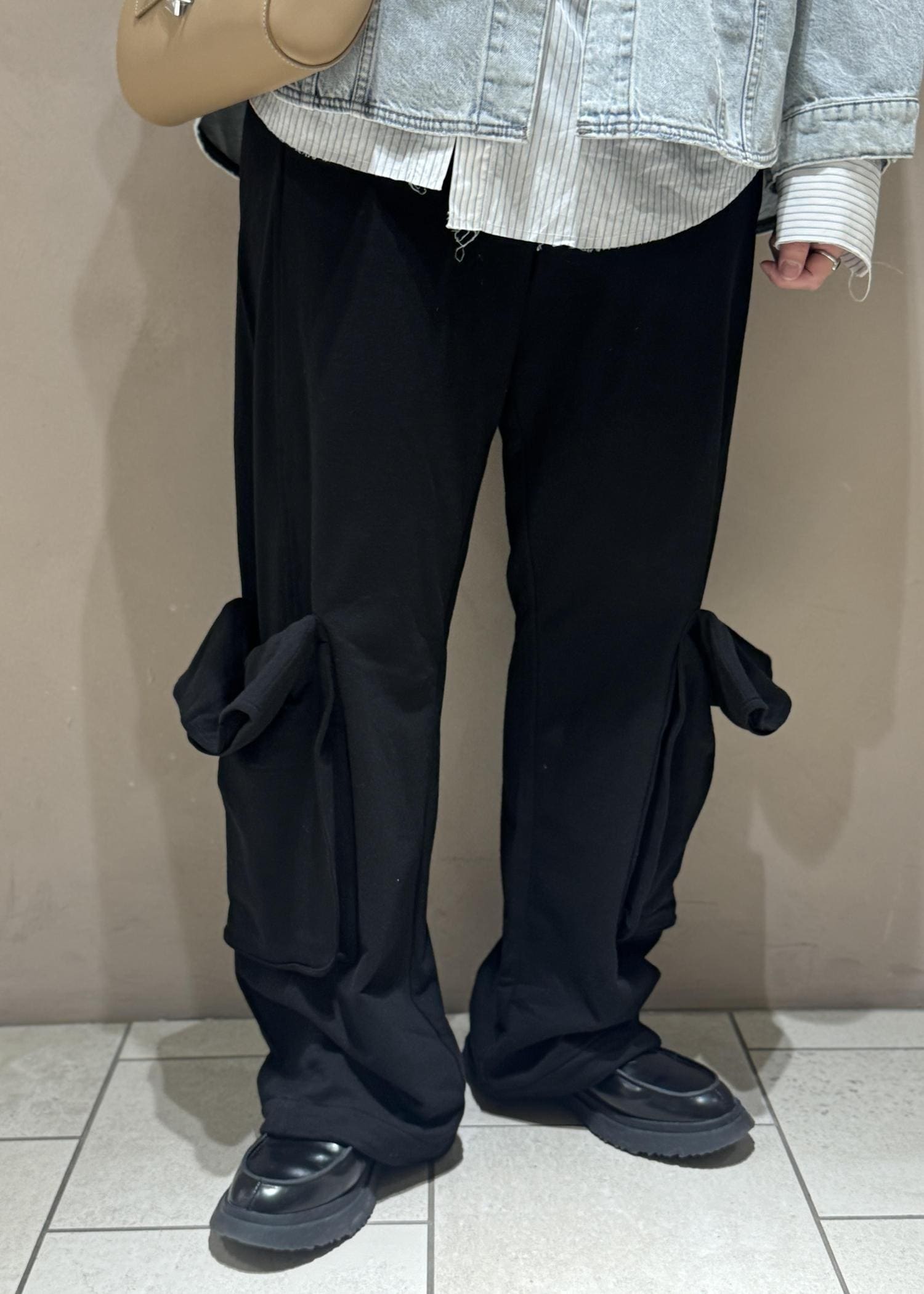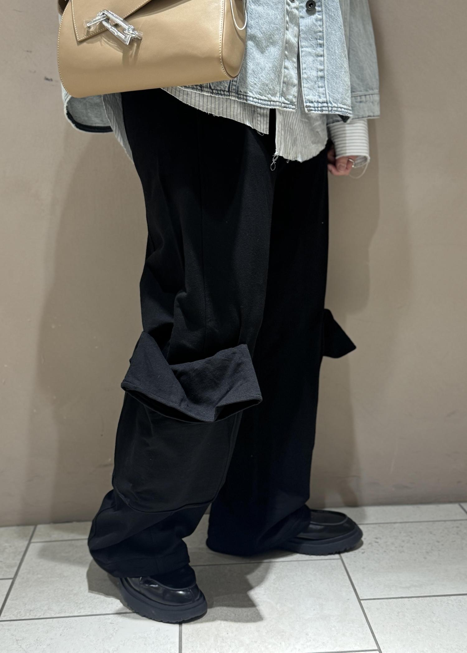 ボトムスは韓国ブランド【OPEN YY】のROLLED WAIST SWEAT CARGO PANTS。