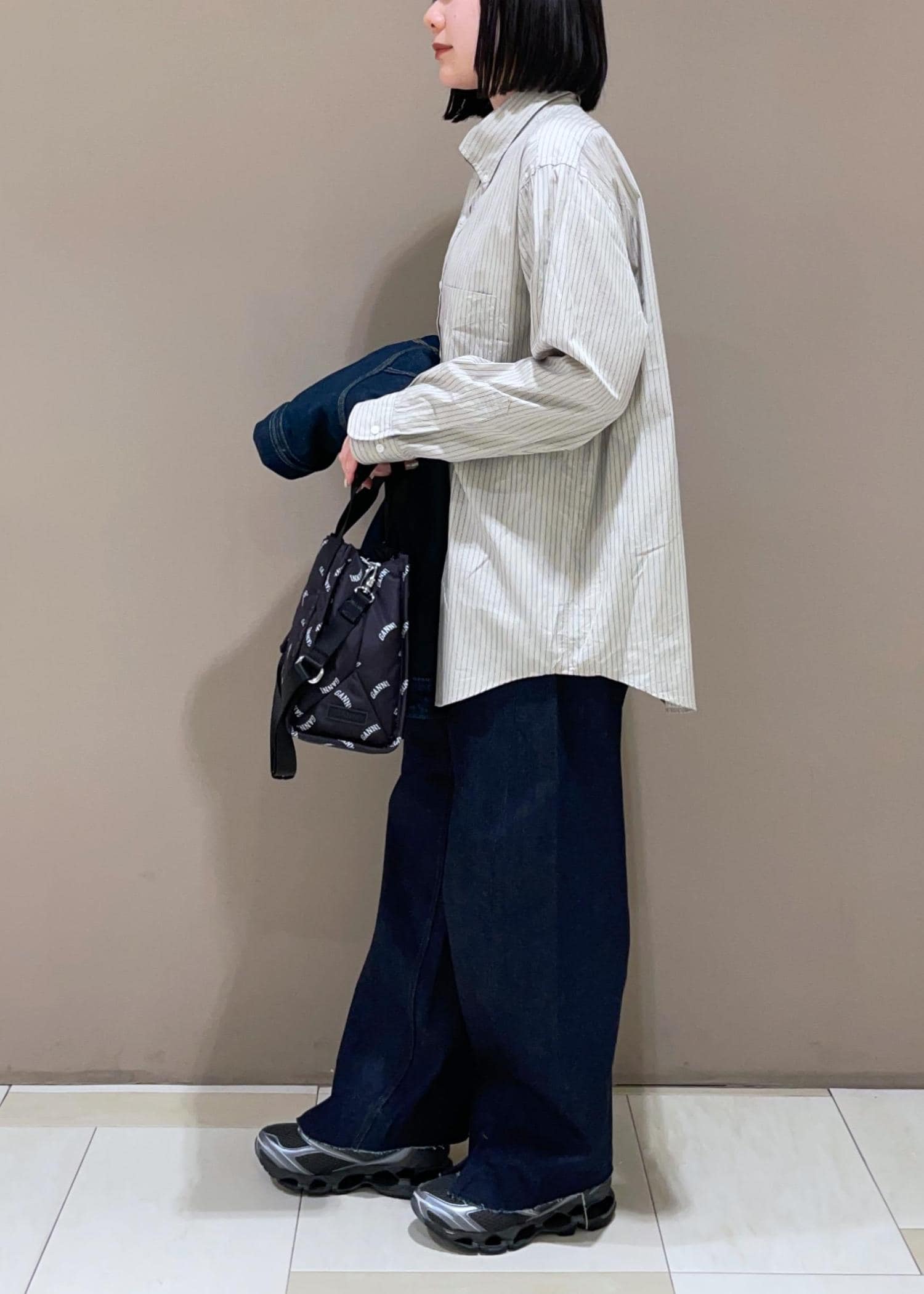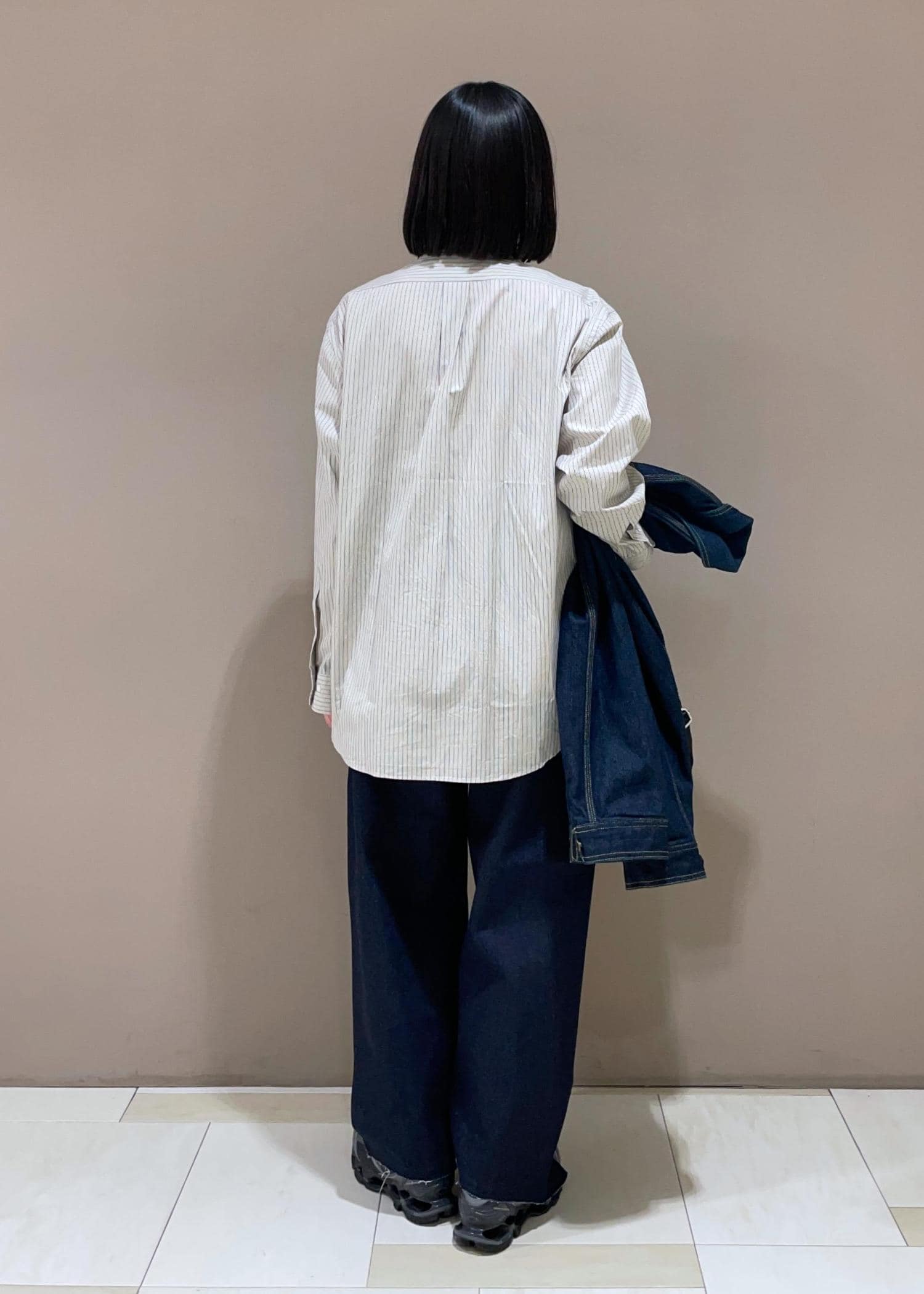 洗濯すればするほど、くたっと感を楽しめるシャツ。オーバーサイズですが、女性らしいバランス感が素敵。首が詰まりすぎずで、ほどよい抜け感が出ます◎