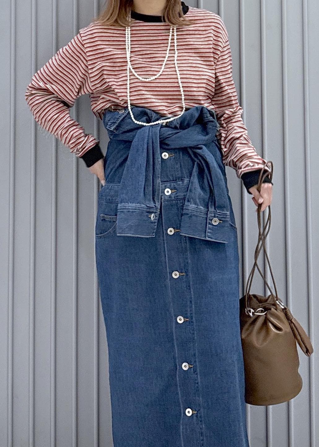 リアルバイしたデニムワンピースを腰巻きアレンジで着てみました!