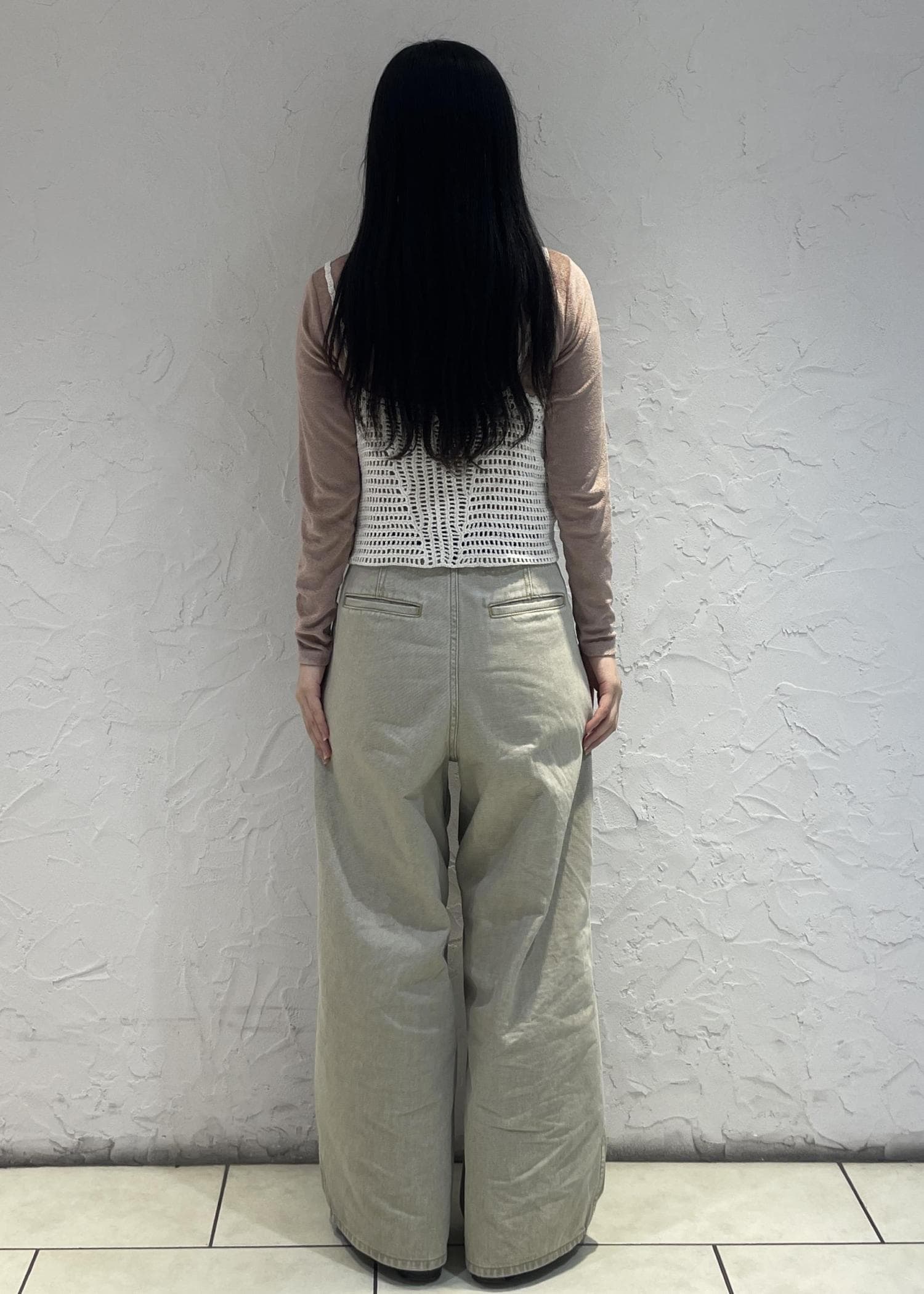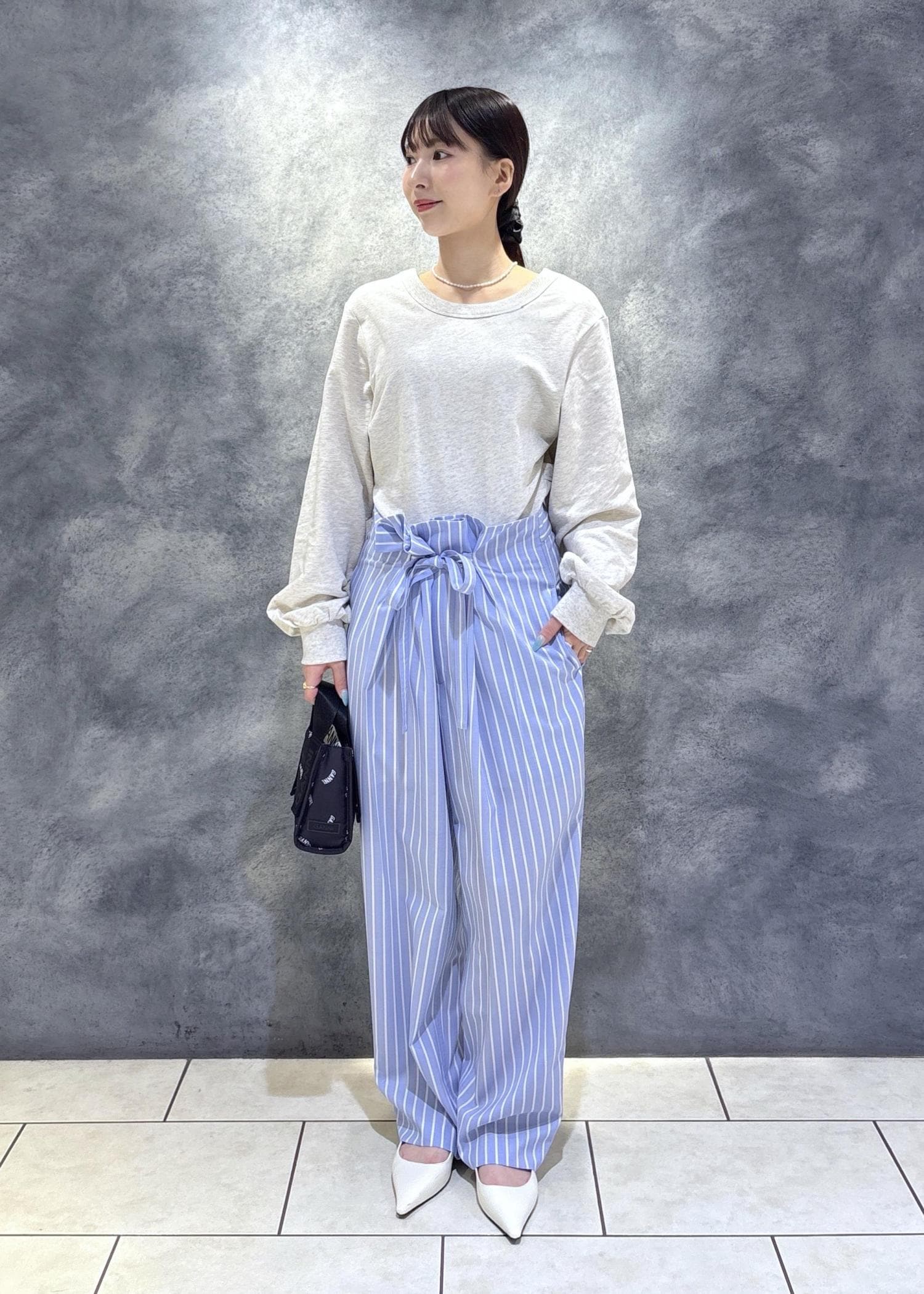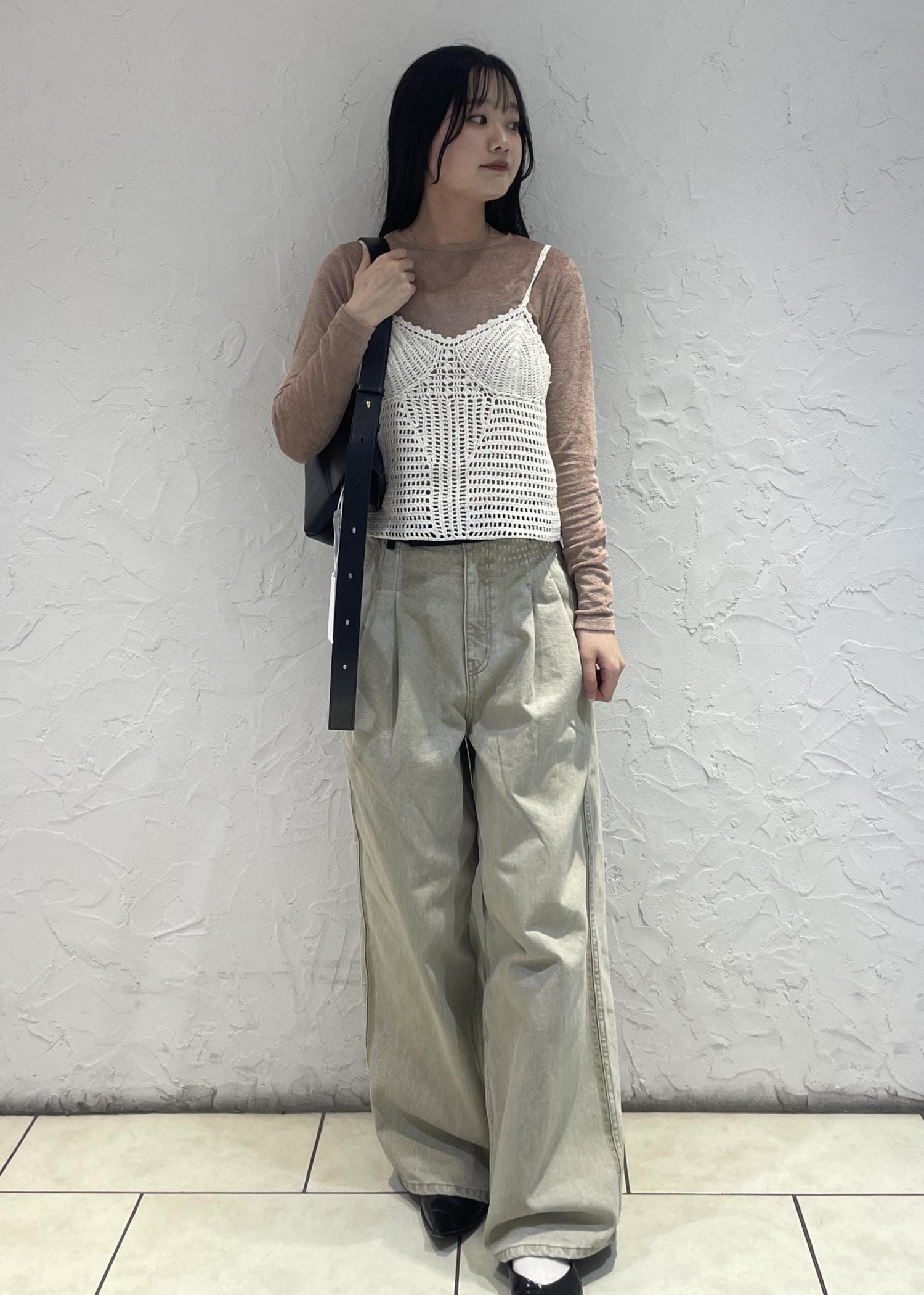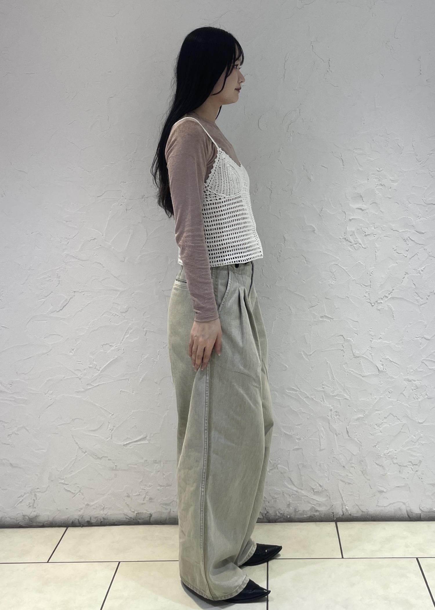 本日はEMOELLEより展開中の、ドレスデニムパンツとコットンリネンクラフトニットトップをご紹介いたします!