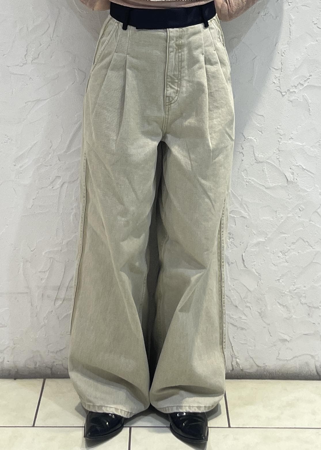 EMOELLE【EMOELLE】ドレスデニムパンツ(バイオ加工)ベージュ系 / 34¥24,200レビューワイドなシルエットにタックが入りすっきり目、カジュアル過ぎない大人なスタイリングが叶います。