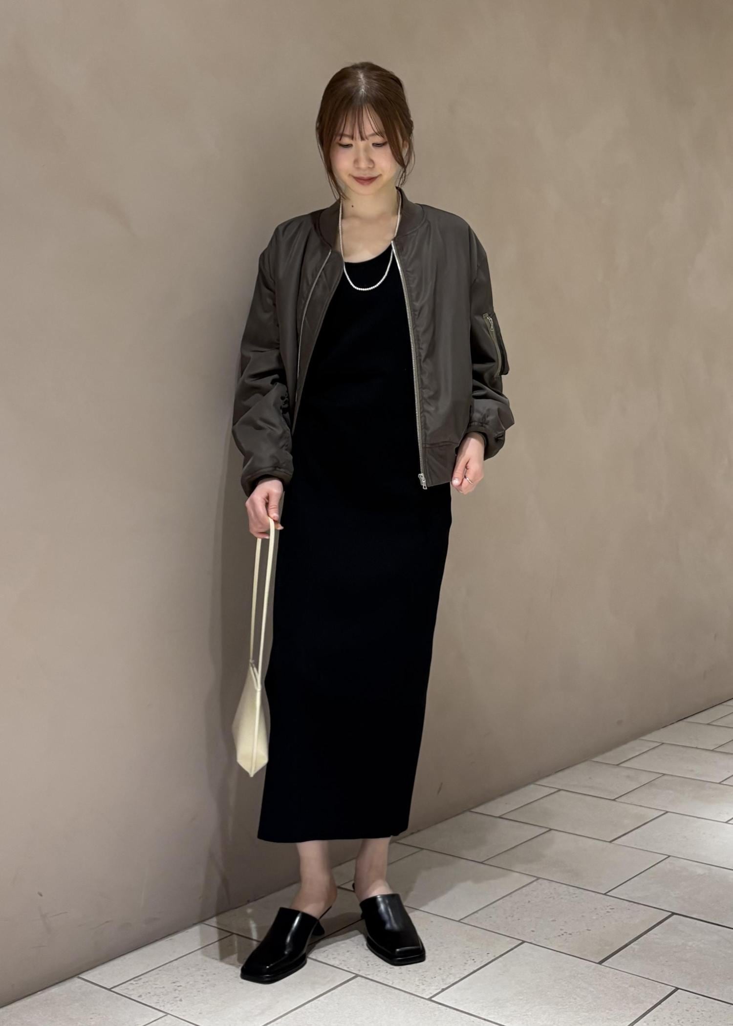 ワンピースは細身で女性らしく着用していただけるシルエットが可愛い!横のギャザーがアクセントになってくれます!