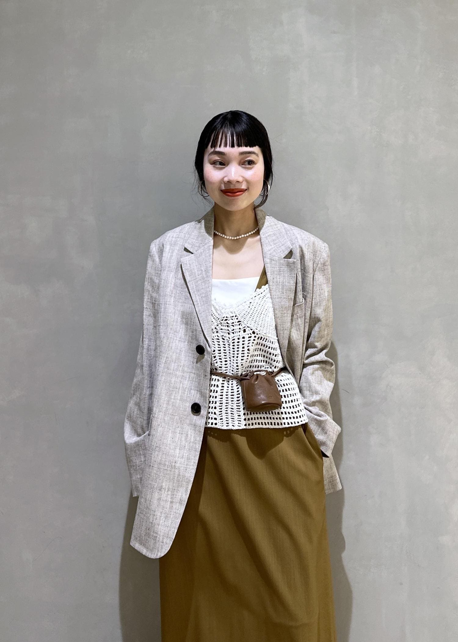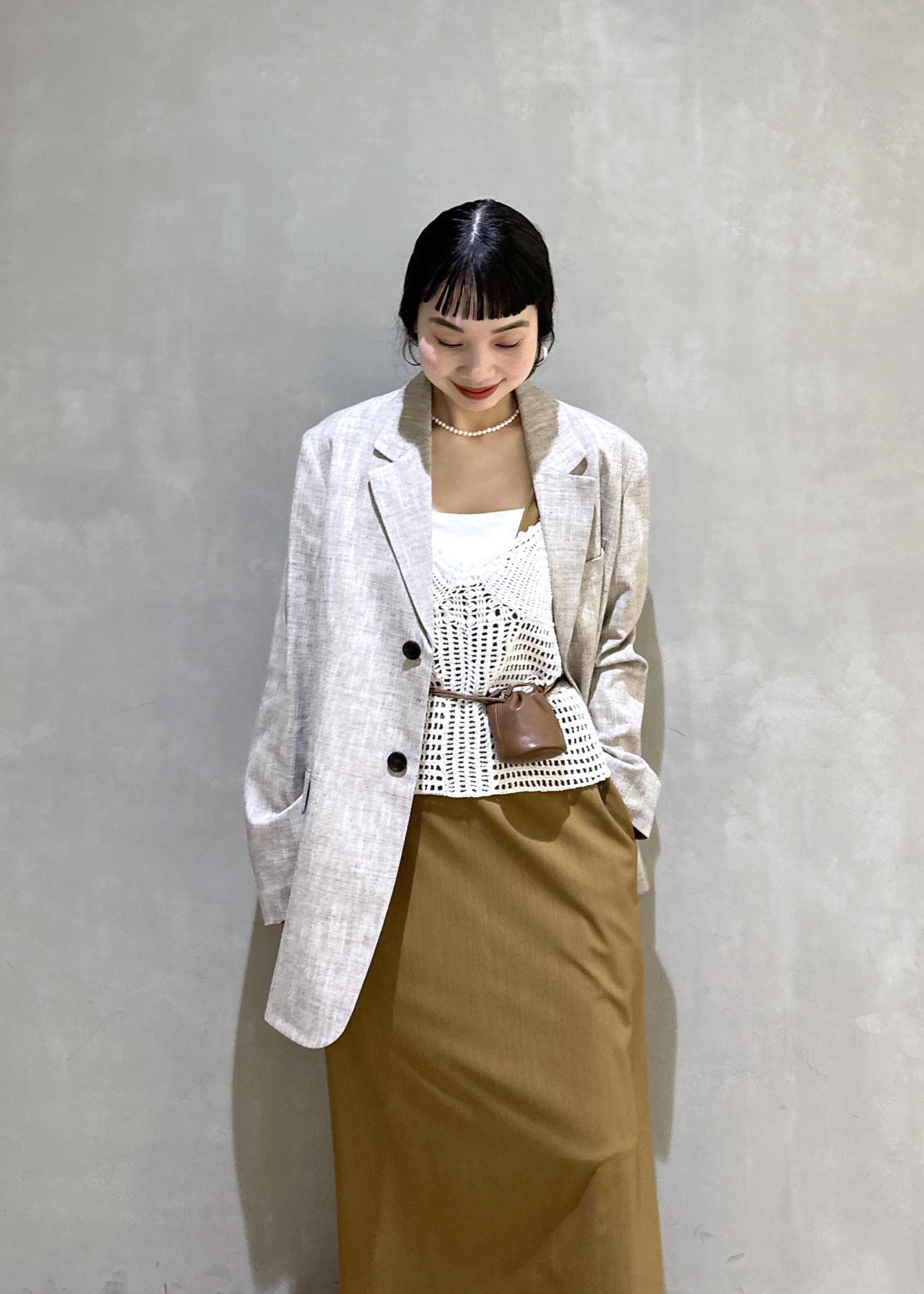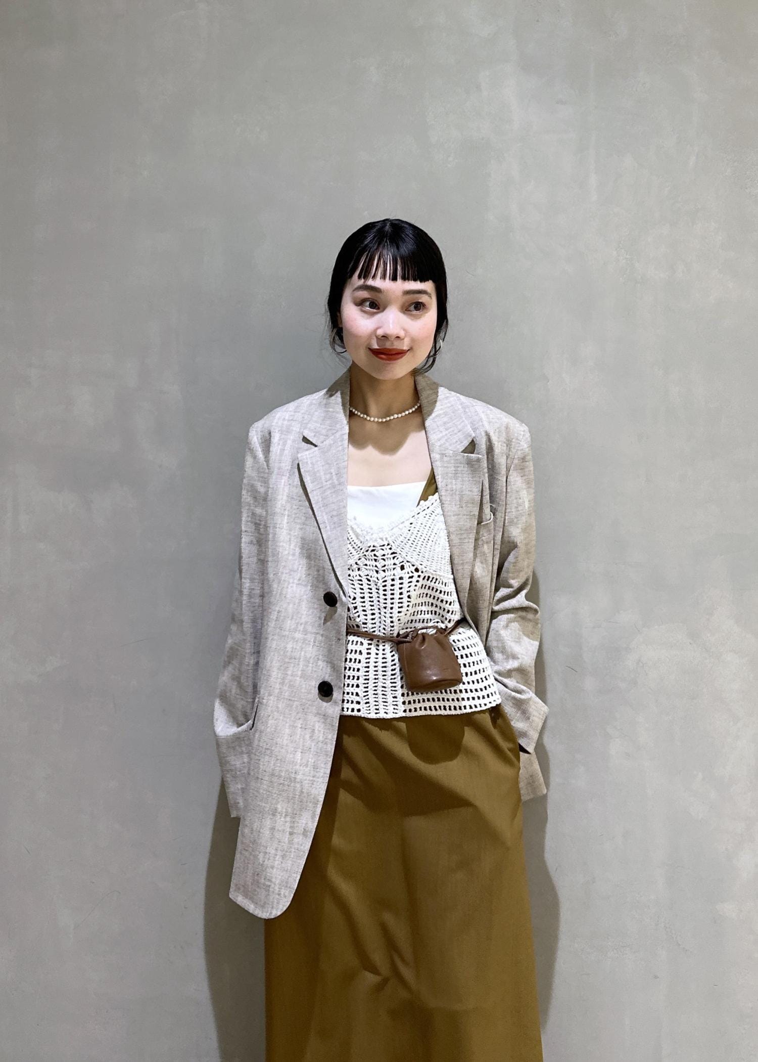 EMOELLE【EMOELLE】シルクネップシングルジャケットベージュ / 36¥37,400レビュー裾丈長めでゆるっとしたサイズ感です。