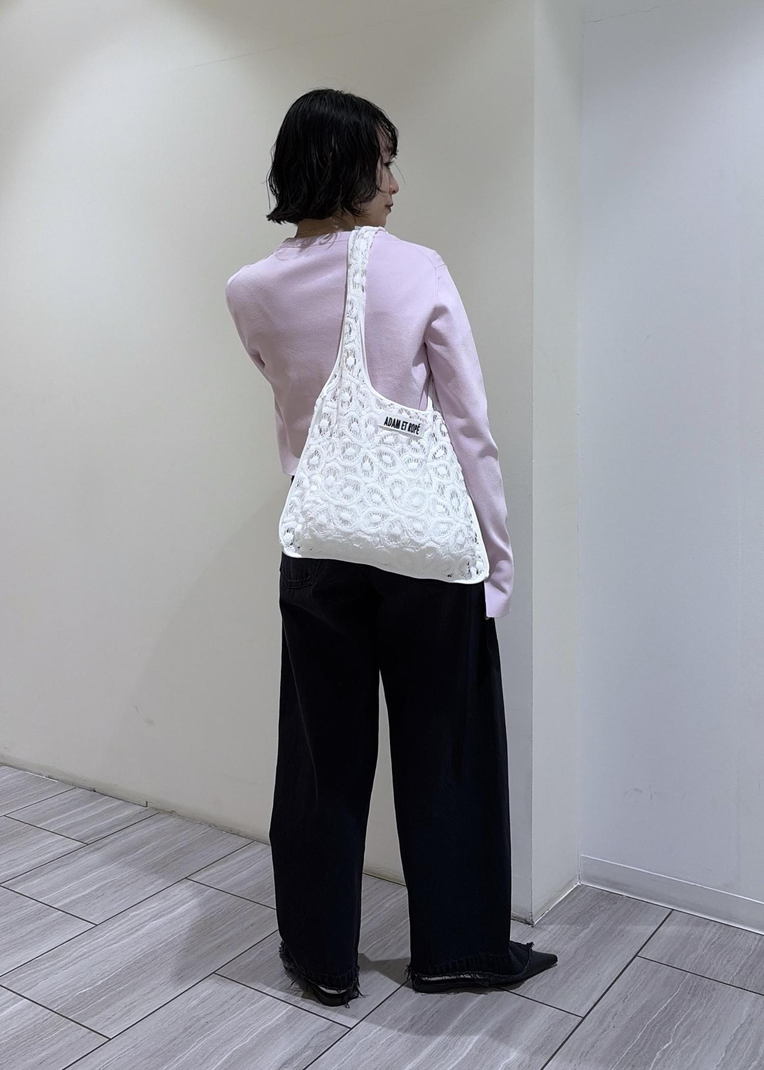 レースのデザインがとても可愛いバッグ。紐が長めなので肩掛けが楽にしやすいです◯