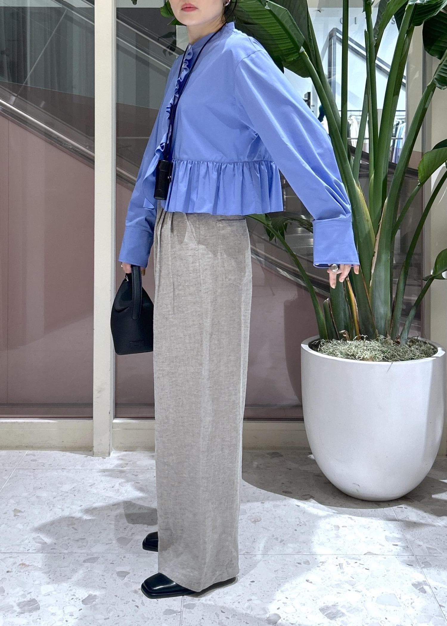 パンツはサラッとした素材で大人な雰囲気がお気に入り。