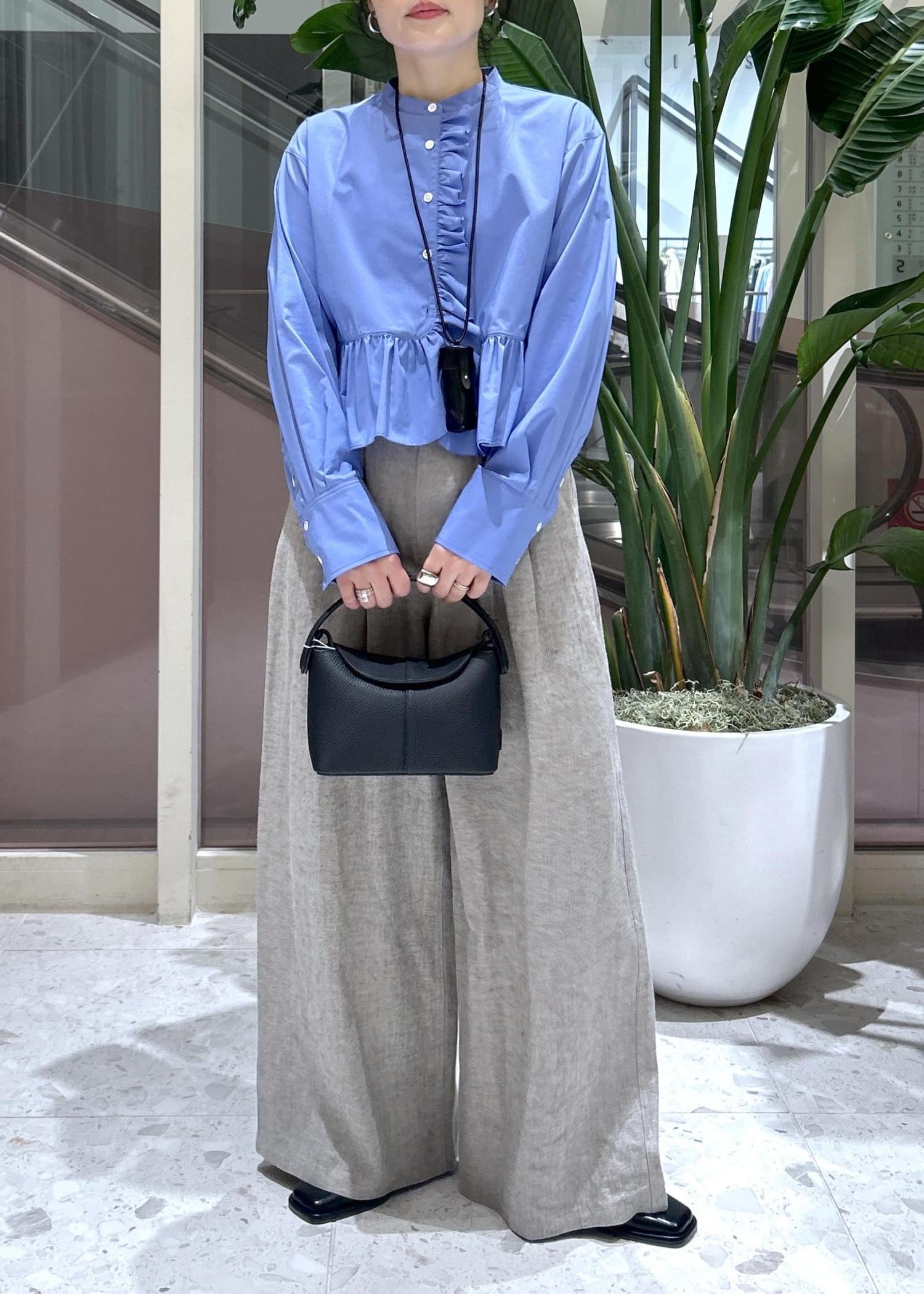 予約ADAM ET ROPÉ FEMME【サステナブル】ロングスリーブフリルブラウスサックス / F¥16,500レビューコンパクトな丈感ですが、身幅はゆったりしており一枚で着やすいです。フリルのボリュームが可愛く、着映えするデザイン。オンオフ使えるアイテムです!