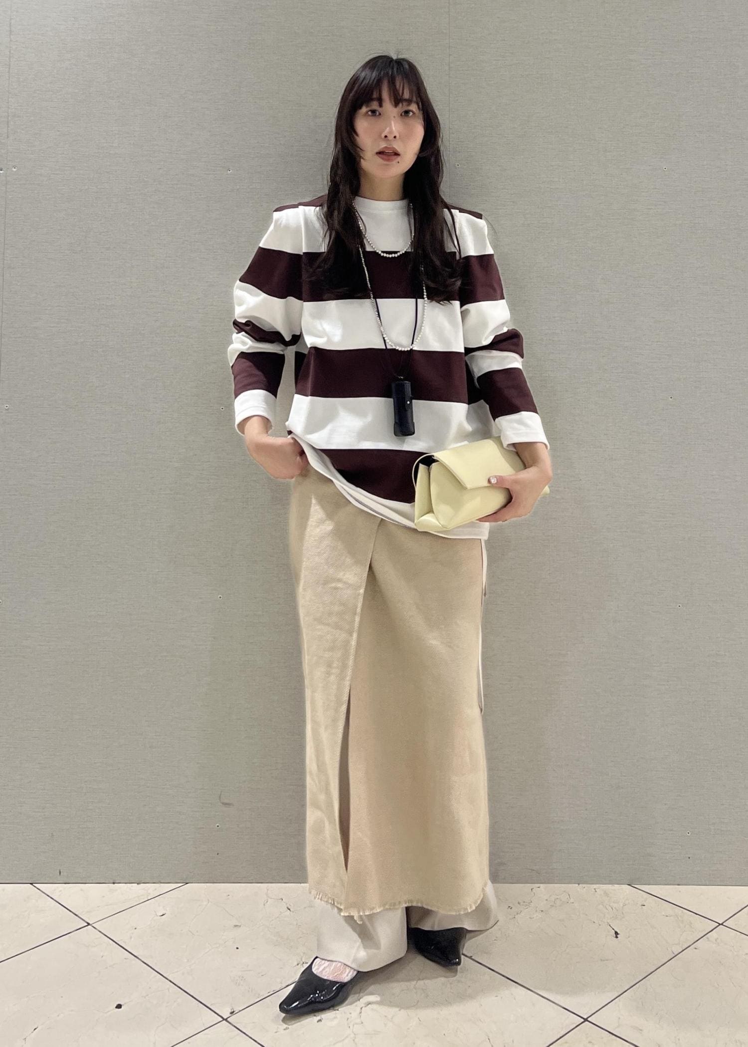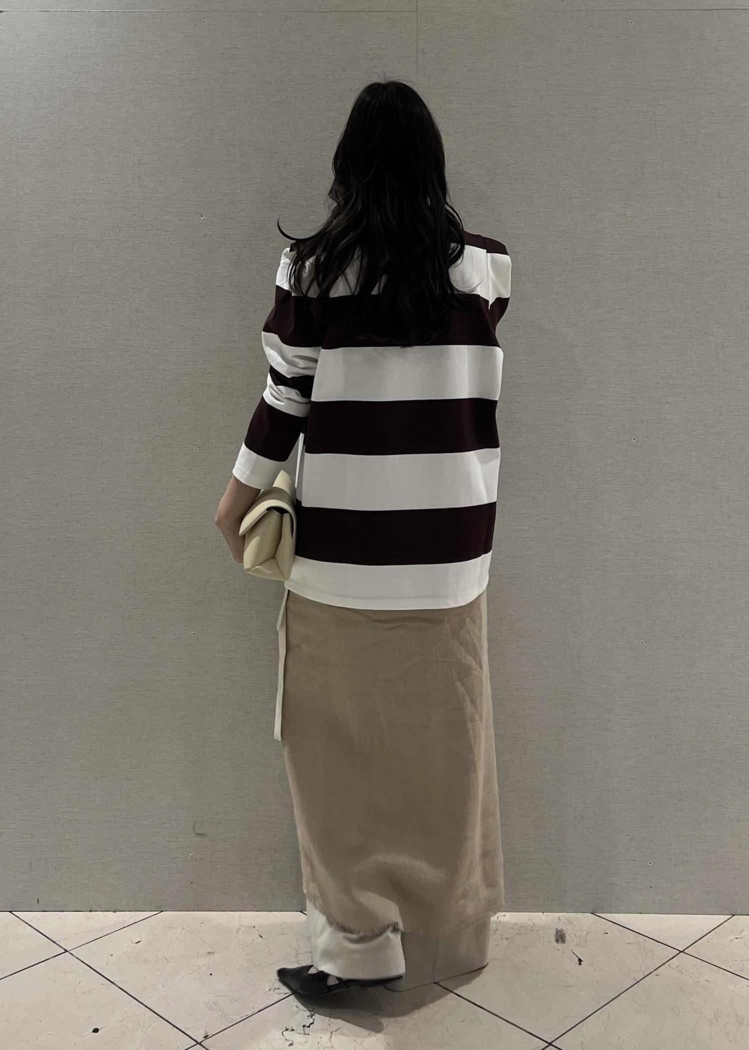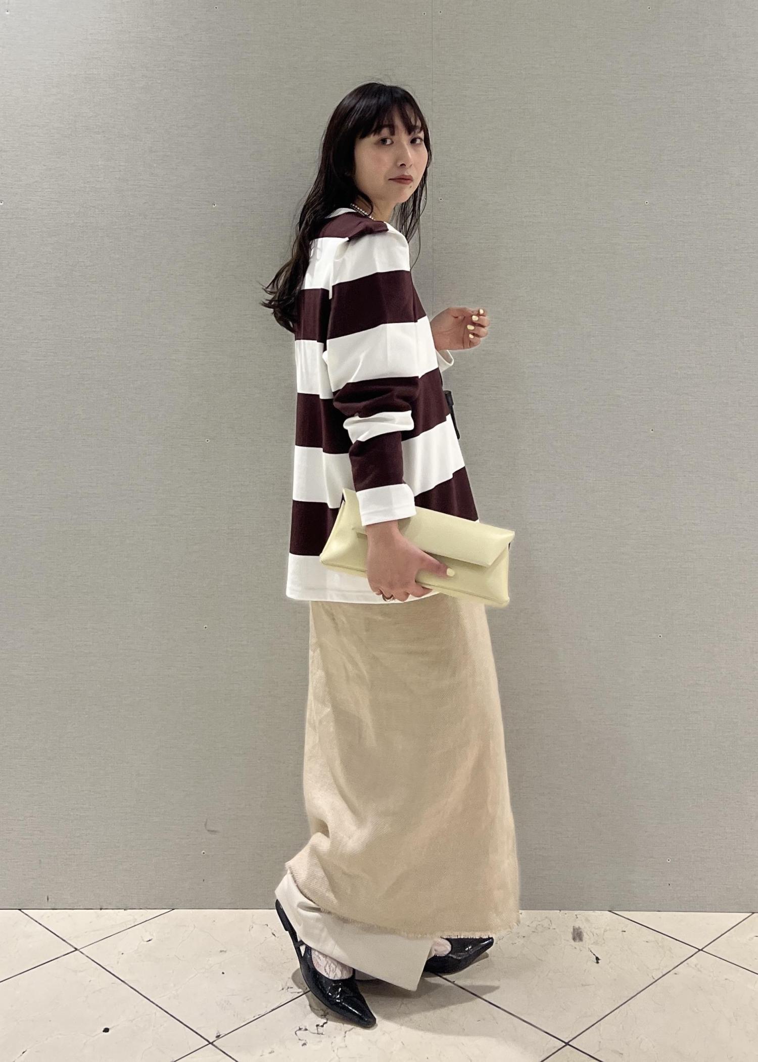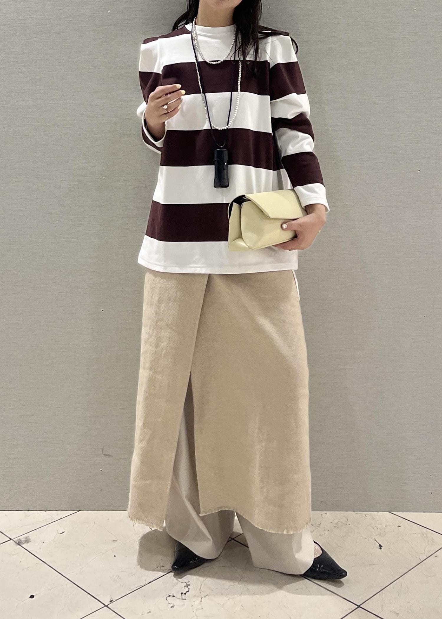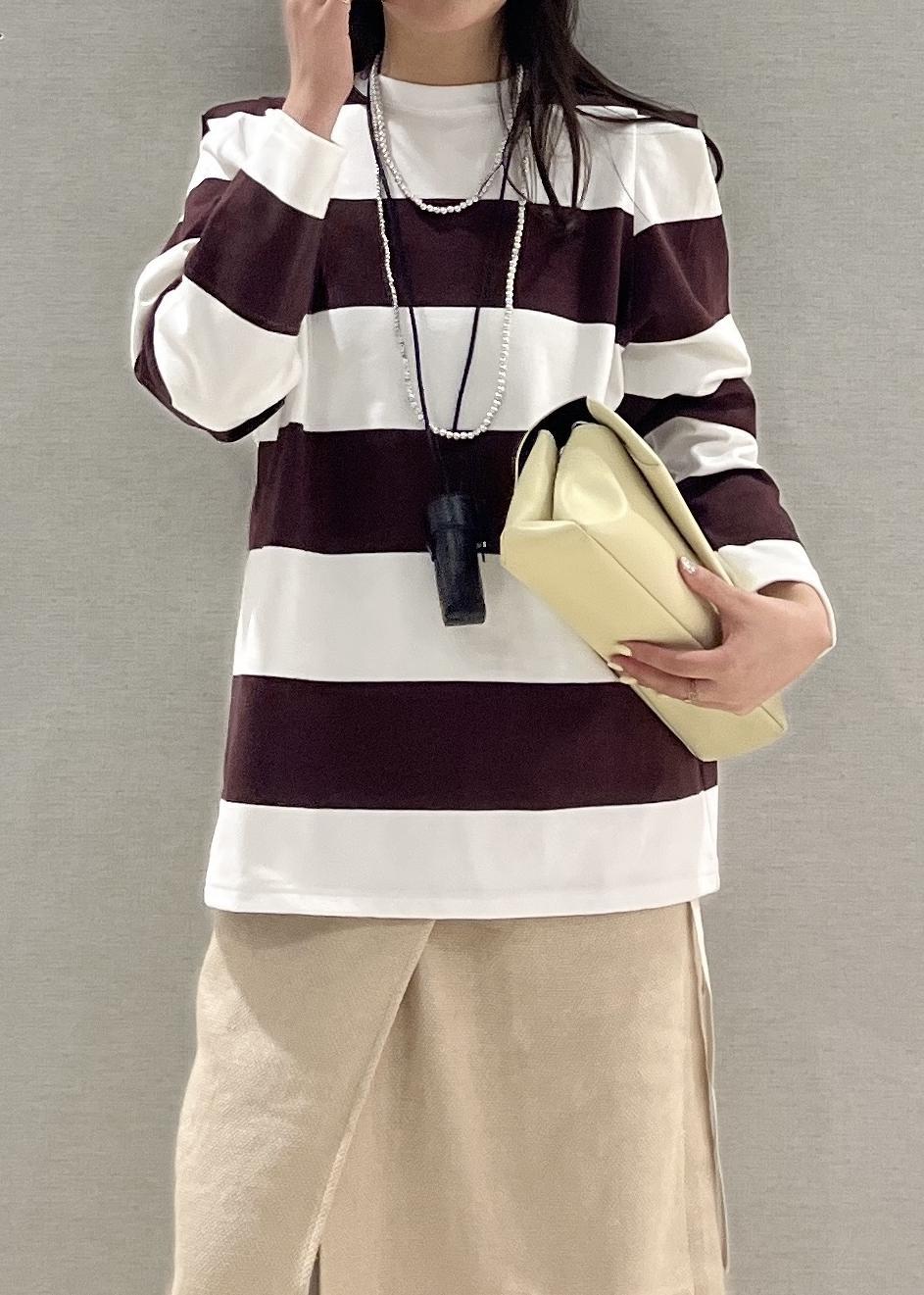 太いボーダーは少し体型などが気になる方もいらっしゃるかと思うのですが、このトップスは本当に綺麗に見せてくれます◎