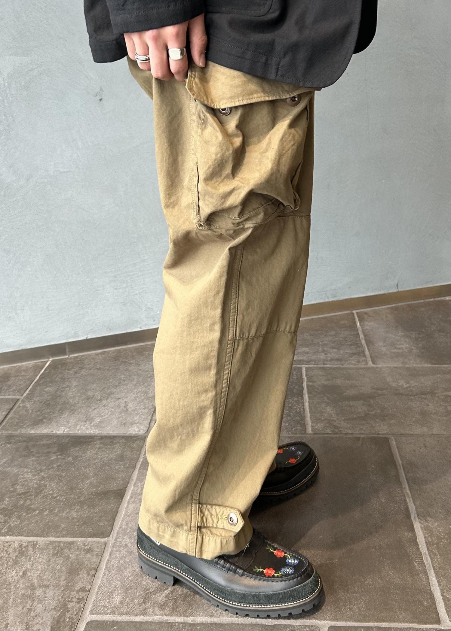 ADAM ET ROPÉ HOMMEヴィンテージ加工 M47 カーゴパンツオリーブ / M¥24,200レビューMサイズで裾がちょうどくらいのサイズ感です。ヴィンテージ加工により穿きこんだ風合いがカーゴパンツらしいカジュアルさを演出しており、ハリとコシのある素材が表情感あるテイストでカッコイイです。