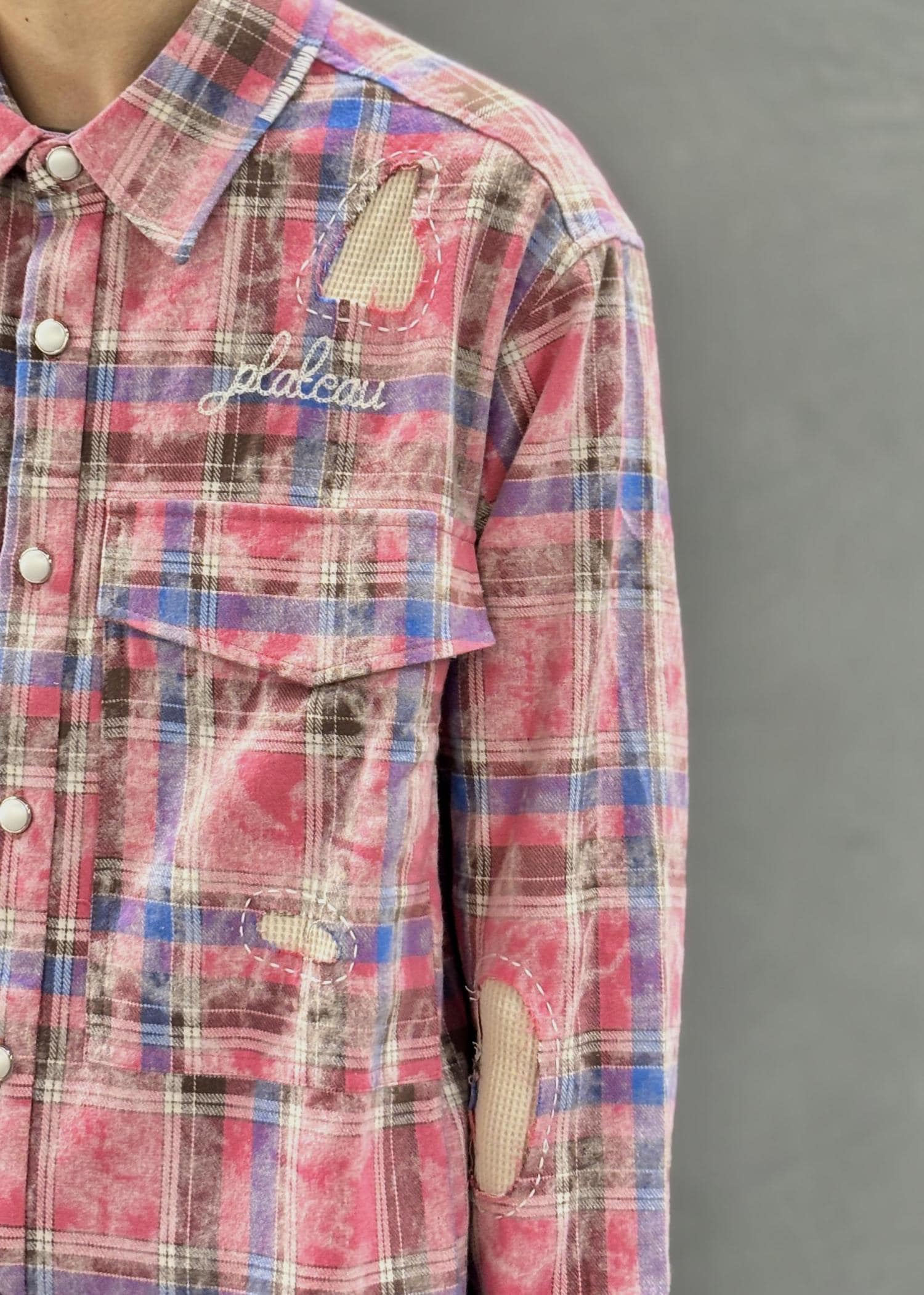 NEW!ADAM ET ROPÉ HOMME【PLATEAU STUDIO/プラトー スタジオ】Hand patch check shirtピンク / 1¥36,300レビュー派手な配色のチェックシャツ