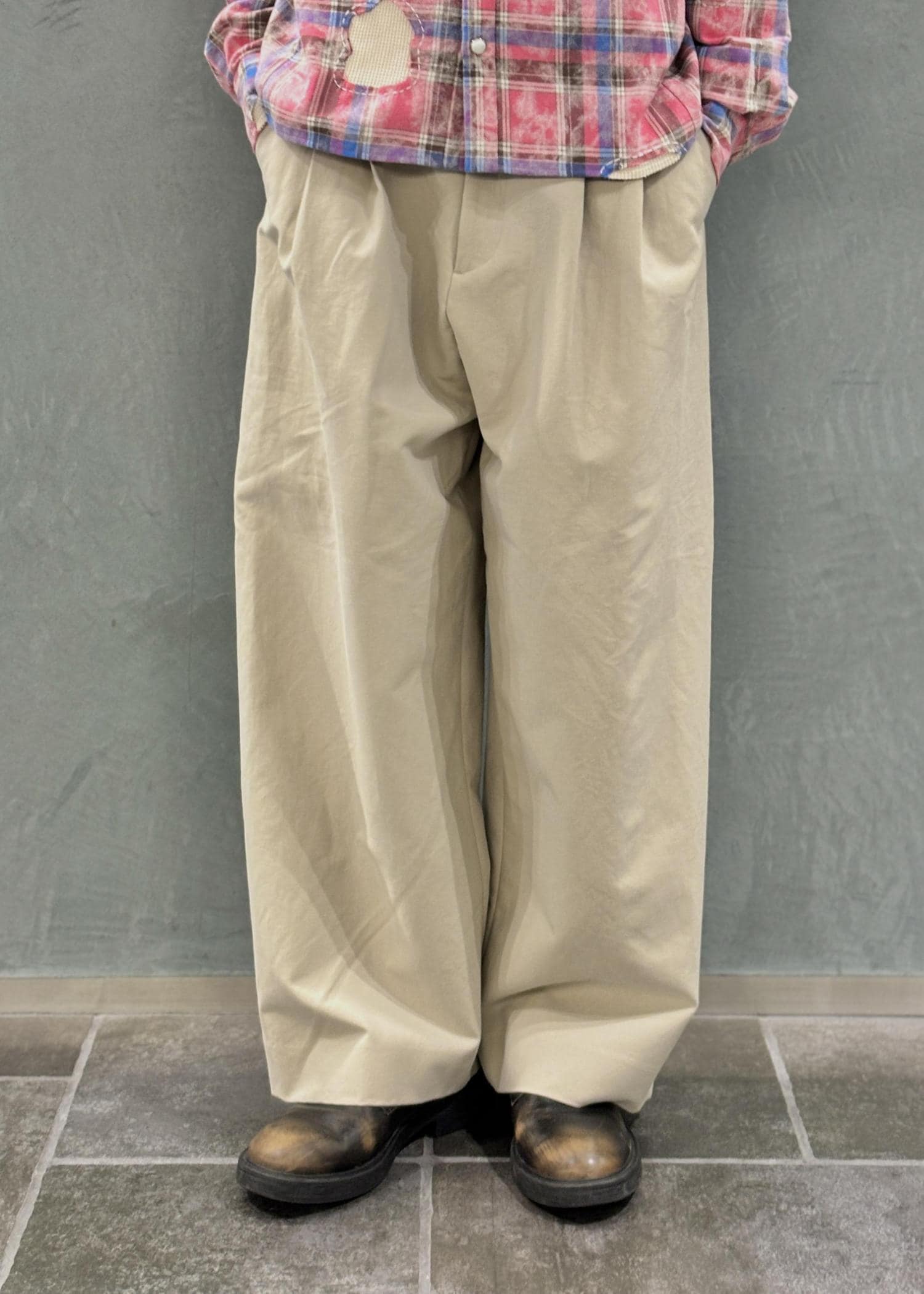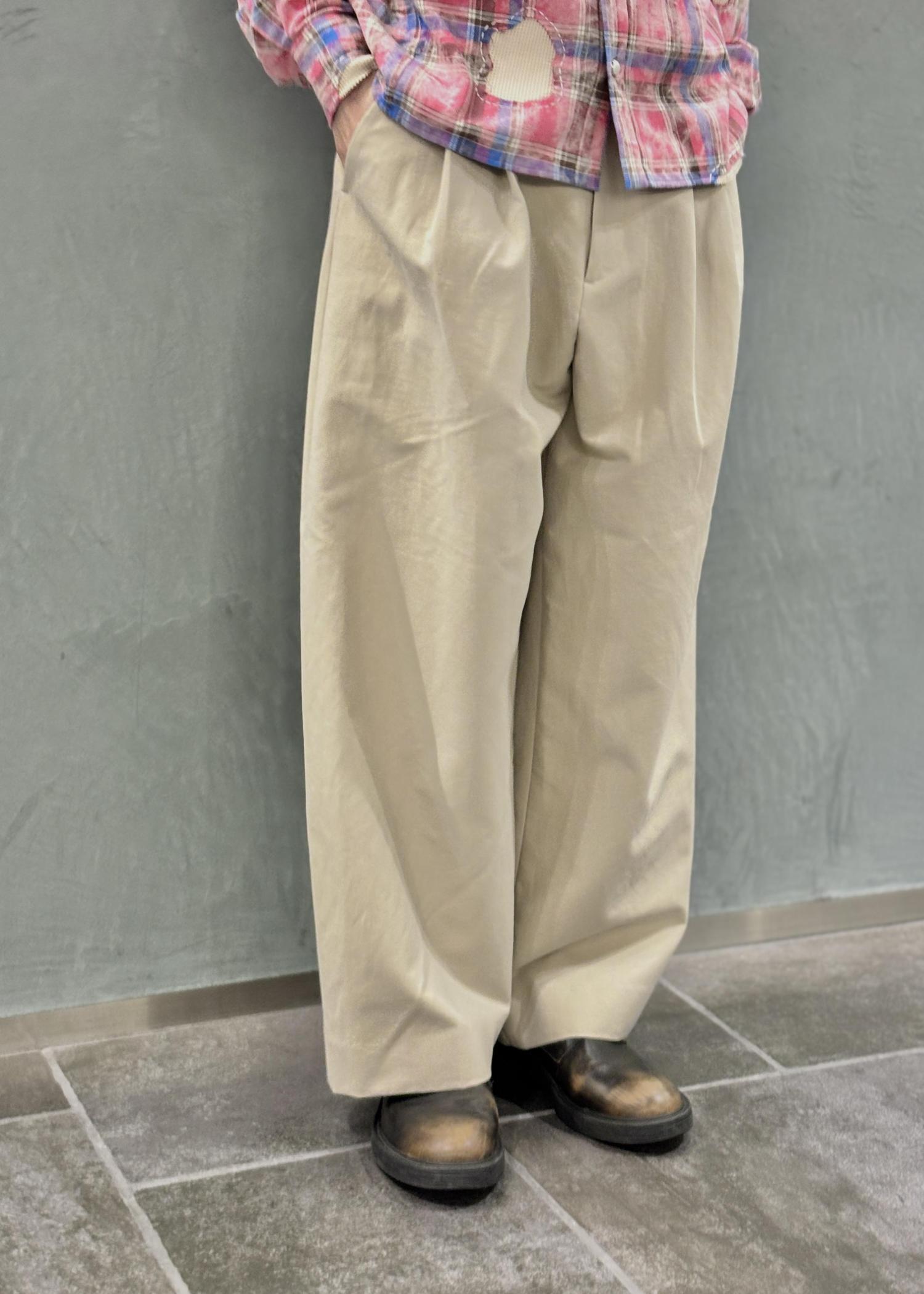 ADAM ET ROPÉ HOMMEコットンダブルクロス バギースラックスベージュ / L¥28,600レビュー181cmでLサイズ着用、ゆとりのあるサイズ感。