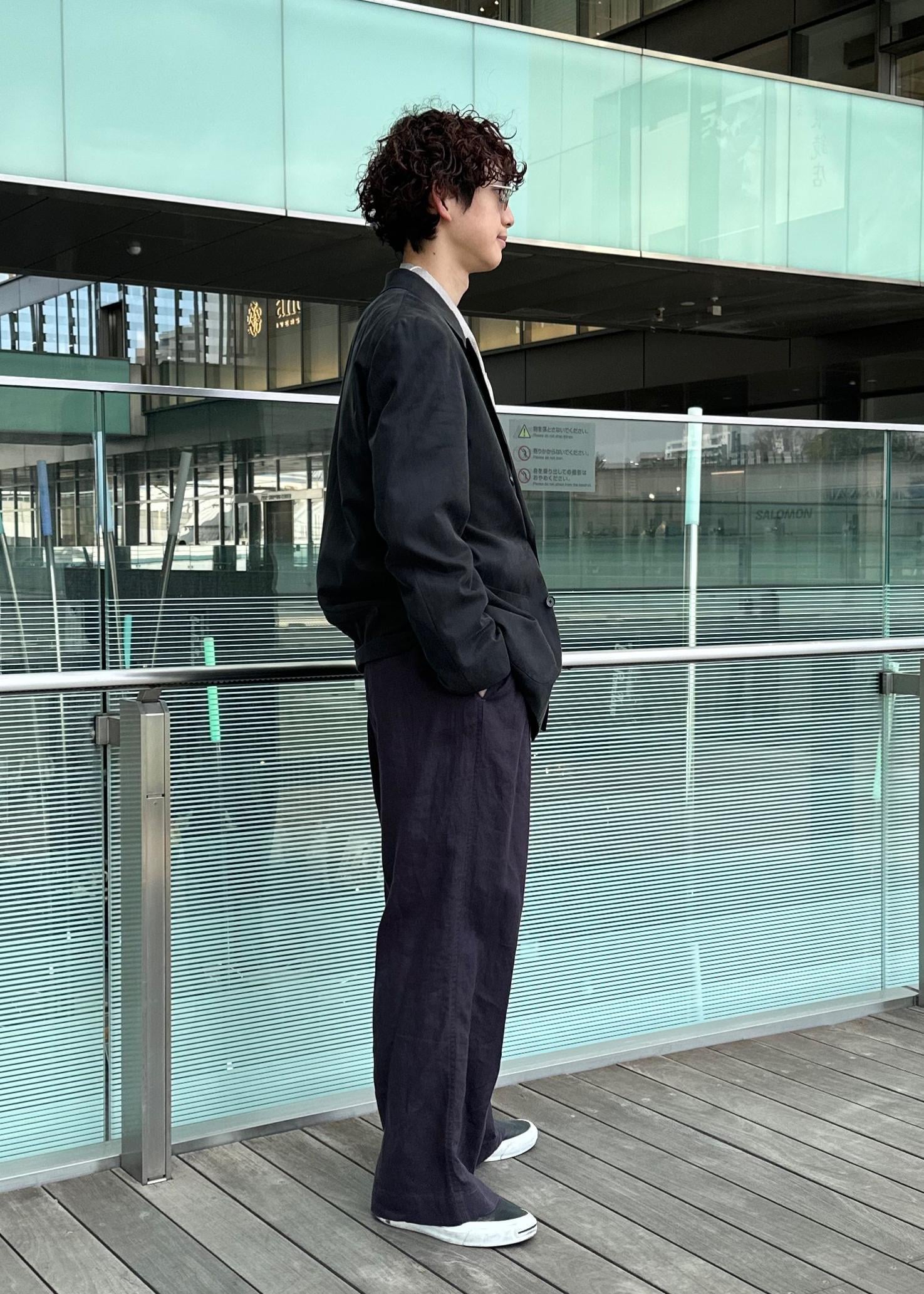 予約ADAM ET ROPÉ HOMMEリネンイージーパンツネイビー / L¥19,800レビュー178cm、痩せ型、骨格ウェーブでLサイズを着用しています。