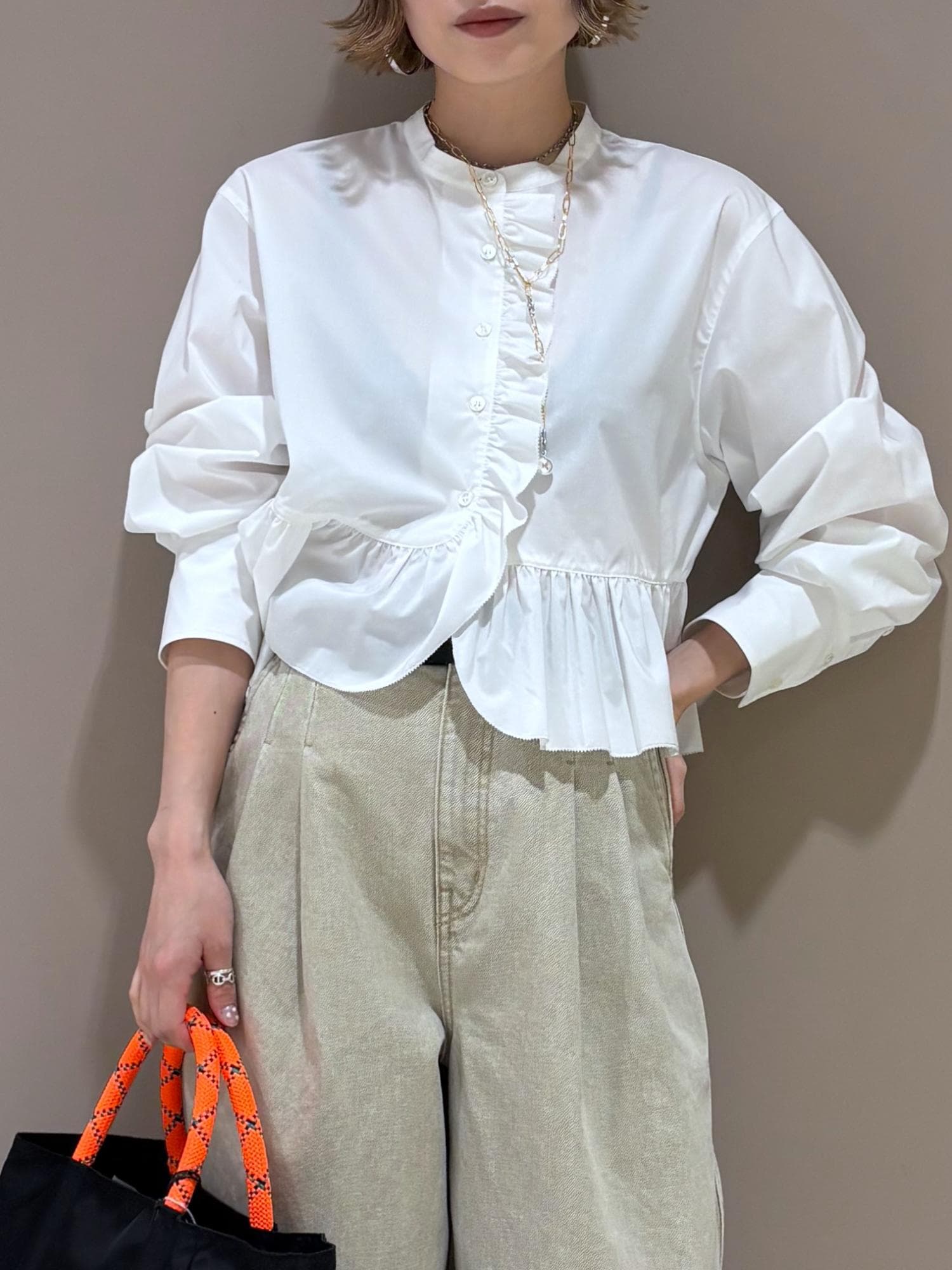 ADAM ET ROPÉ FEMME【サステナブル】ロングスリーブフリルブラウスホワイト / F¥16,500レビュー昨年大人気だったブラウスを長袖にして新登場◎