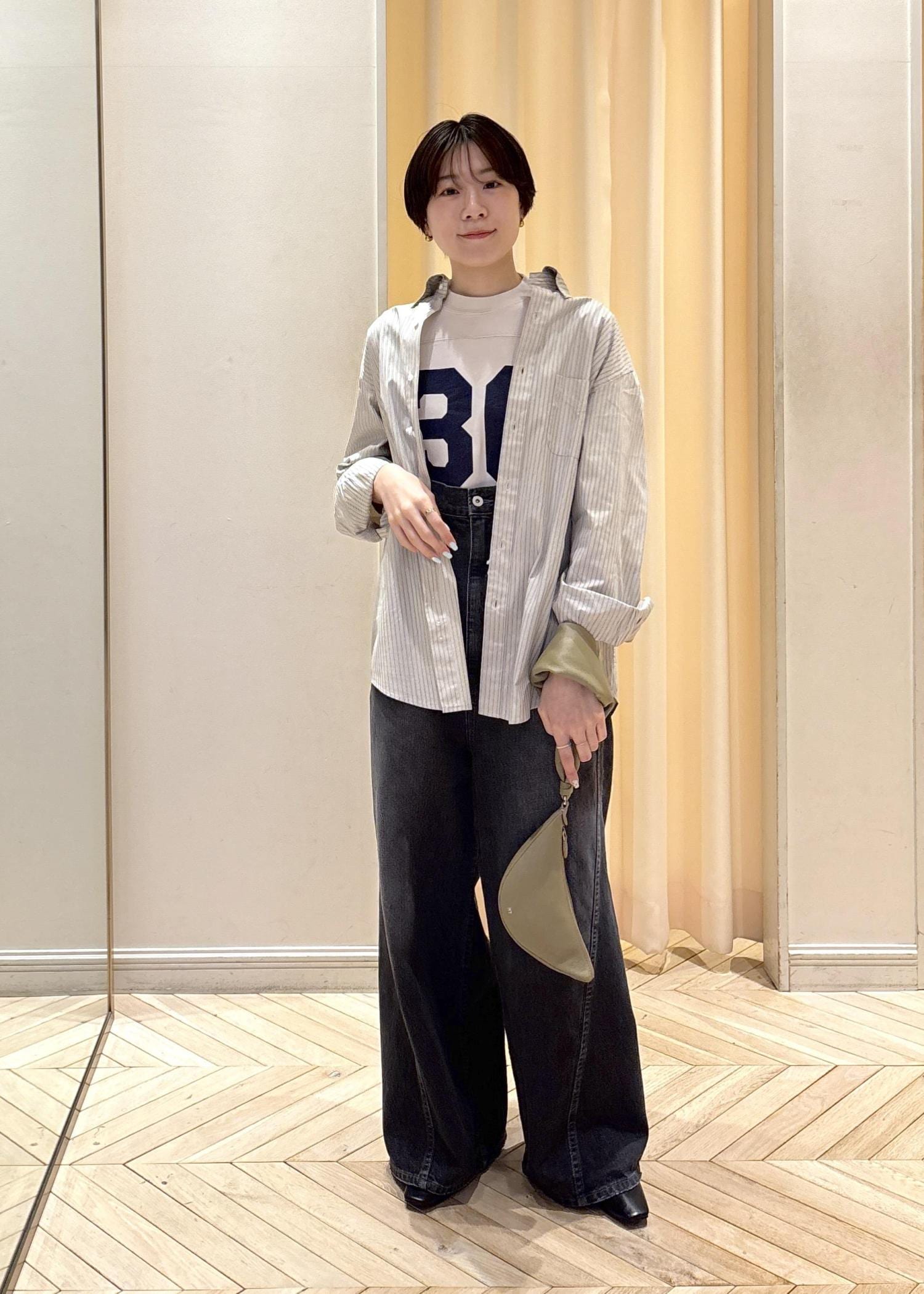 カジュアルなスタイリングが好きなので、ロゴTEEにシャツでとことんカジュアルに合わせました!