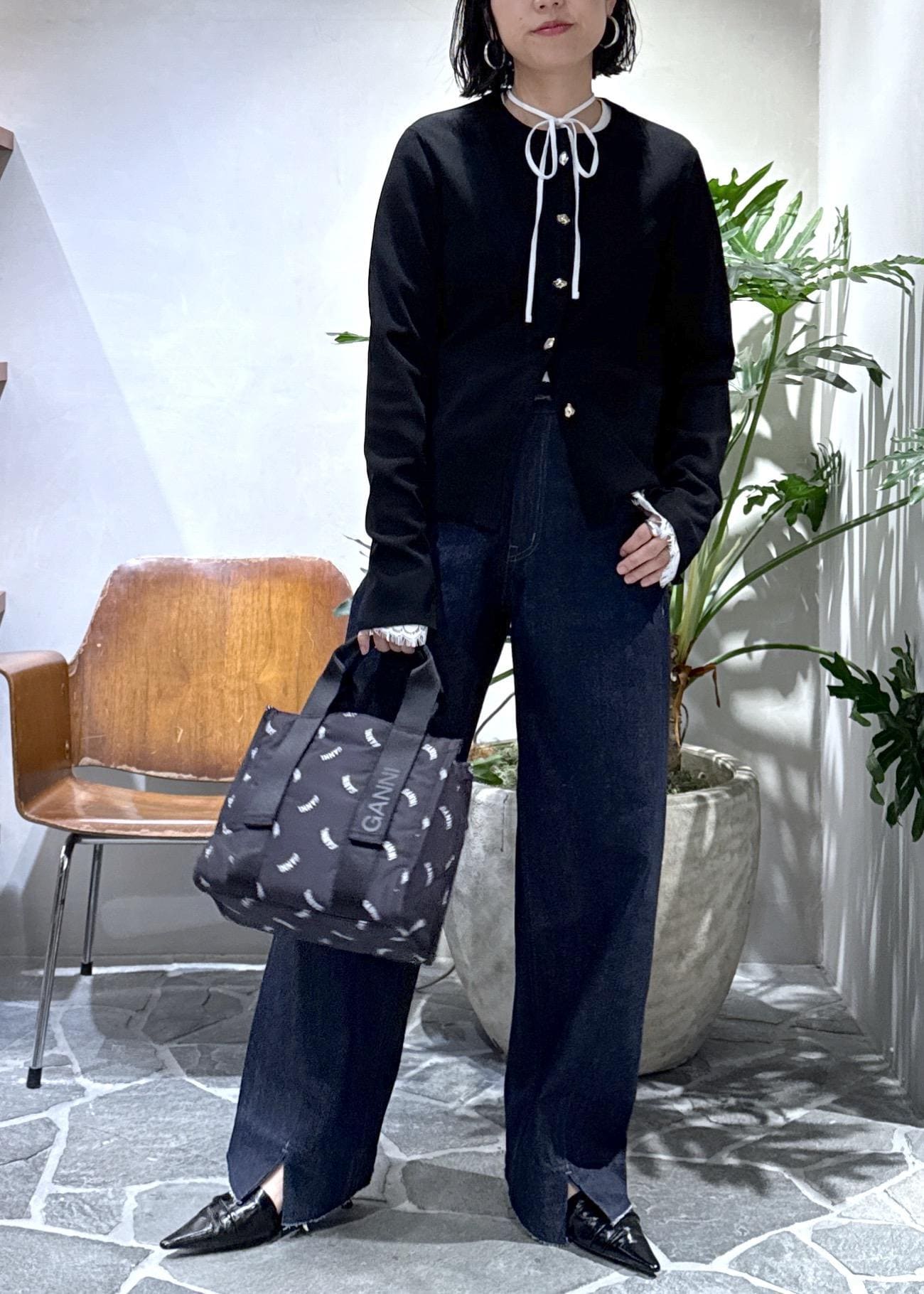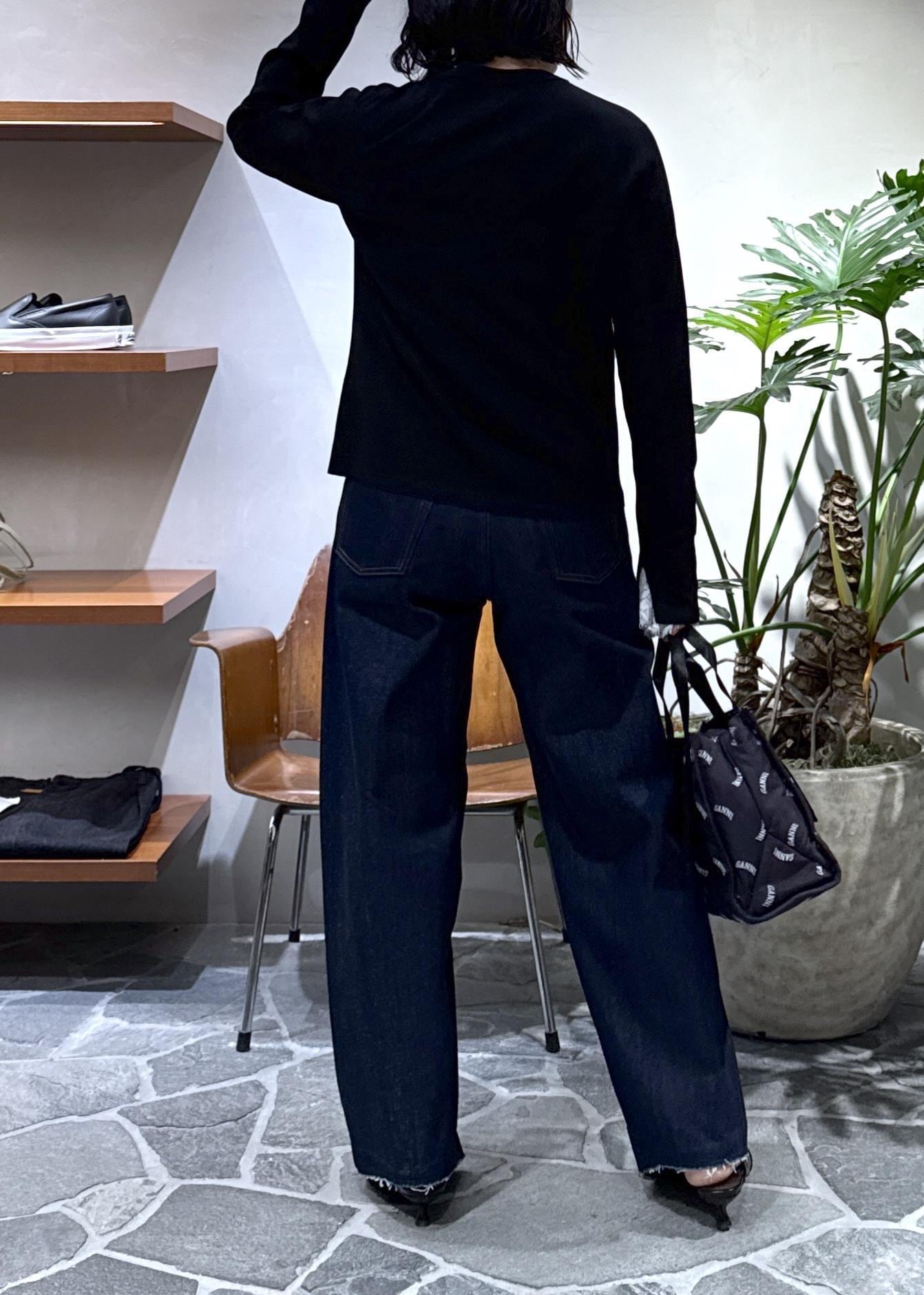デニムはカジュアルなシルエットですが、インディゴでキレイめな雰囲気をプラスしています。