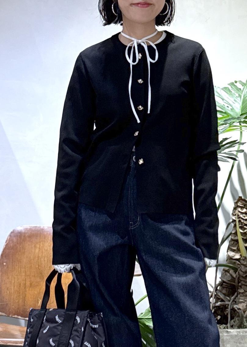 コンパクトな着丈に長めの袖がトレンド感あり、キレイめにスタイリングしても目を惹く印象に。
