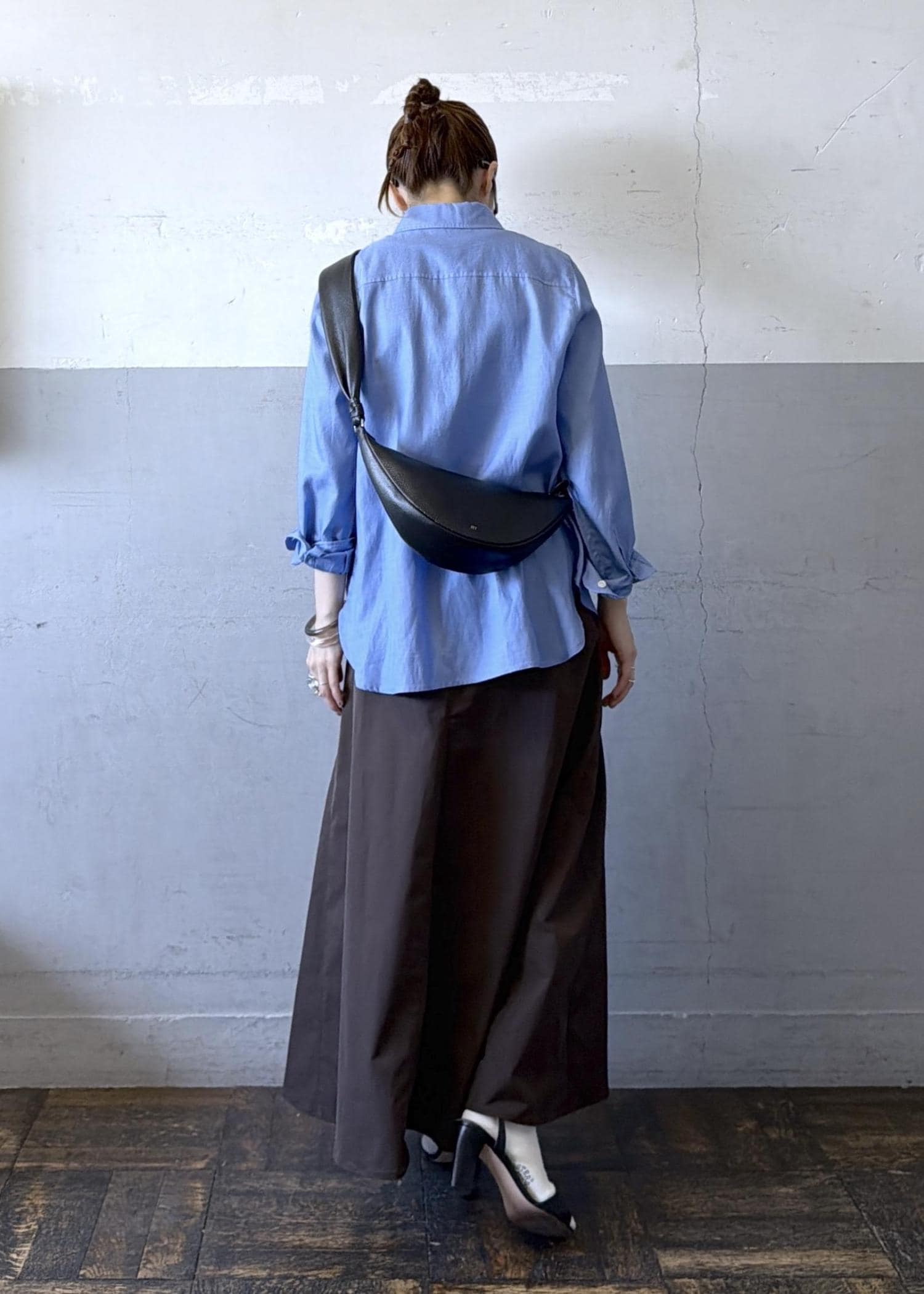 パリッとハリのある素材なので、履くだけでどの角度から見ても綺麗なシルエットが出てくれます。 -