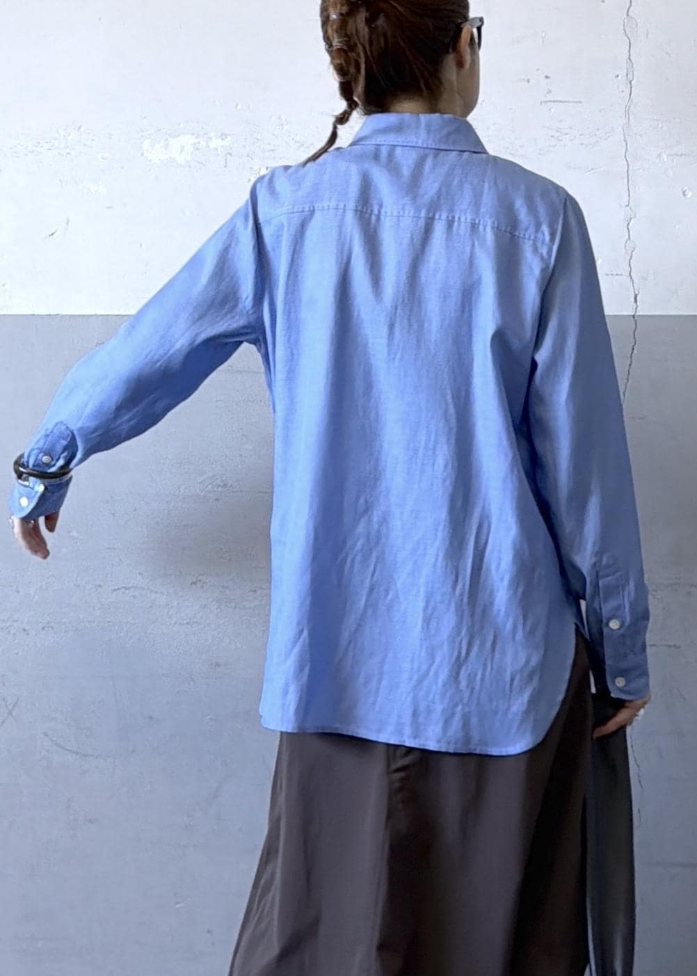 ADAM ET ROPÉ FEMME【PROTAGONISTA for ADAM ET ROPE'】別注 キュプラシャツブルー / F¥23,100レビューキュプラ混なので光沢感があり女性らしい印象のシャツ。